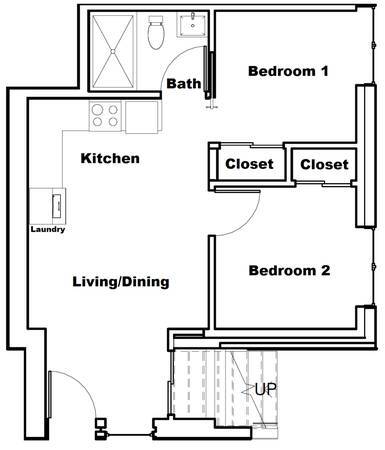 - 2BR, 1BA