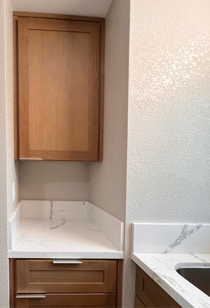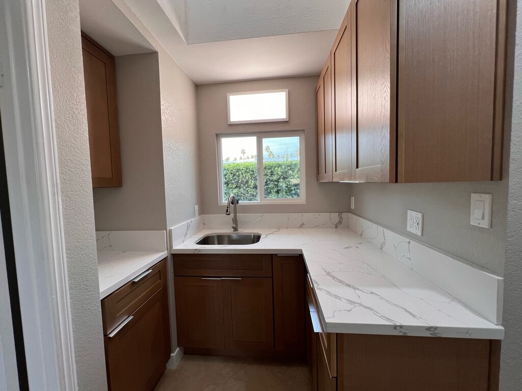 One-bedroom, one-bath unit in a quiet duplex offers a comfortable and private living space with a flexible layout that includes a living area, dining or workspace, and a kitchenette equipped with an electric movable stovetop, cabinet storage, a microwave nook, and a refrigerator if needed. The bedroom includes two closets, and the bathroom features tile flooring and a full bathtub. The unit has luxury vinyl hardwood flooring throughout, one dedicated driveway parking spot, and access to a shared open backyard as well as a covered outdoor seating area. Conveniently located just minutes from the 5 freeway entrance and about 6–7 minutes from both the 91 ,105 and 605 freeways, this home provides easy commuting and close proximity to local amenities.