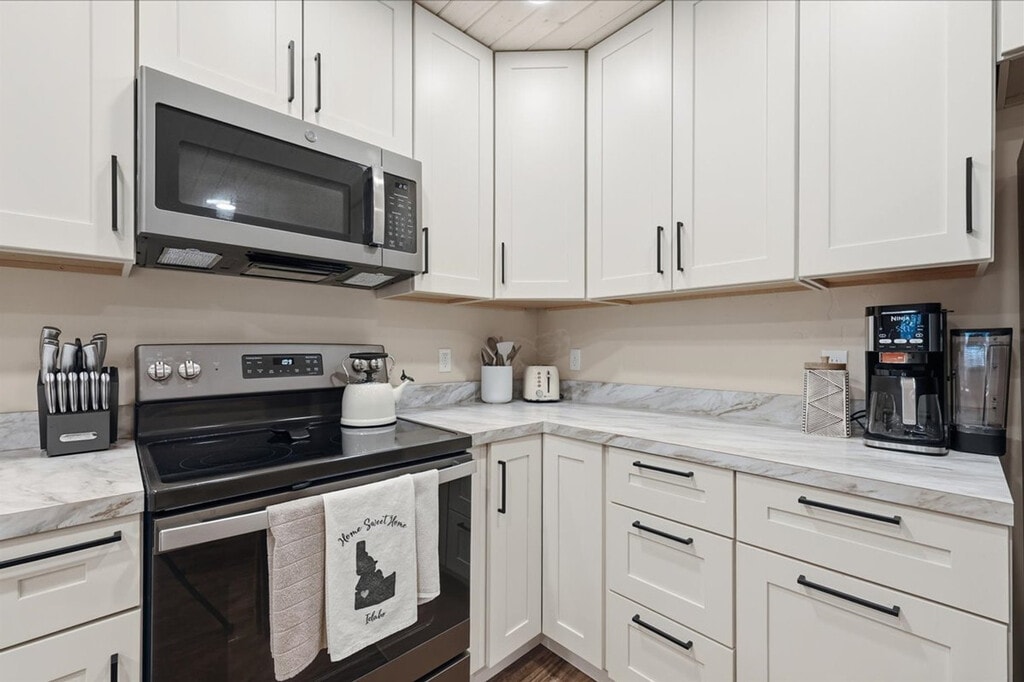 Feel at home in this modern, 2021 custom-built home in Boise! This good-sized 1,700 square foot home is in a fantastic location. The professionally decorated space features unique furnishings and a warm ambiance. Complimentary live TV and coffee are provided. The fully loaded kitchen comes with stainless steel appliances such as a microwave, fridge, stove, and dishwasher, along with glasses, mugs, dishes, and cutlery. Enjoy the fully fenced back area between the house and garage. Free parking is available via street parking with the provided parking pass. This home is dog-friendly, so you can bring along your furry friends for your trip (limit 2). This home is a 5-minute walk to Boise State University and close to the downtown restaurant scene. Easy access to the amazing local water park and blocks from Bronco Stadium and the Boise State University campus. The neighboring houses are able to see into the backyard area fairly easily. The home occupancy permit allows 6 people. Smoking or vaping is permitted outside as long as you clean up after yourself and keep the smoke and vapors more than 10 feet from open doorways or windows; the smoking fee starts at $500, and you will also be charged the cost of cleaning and removing the smell. Quiet time is between 10 pm and 8 am to respect neighbors and the area; no loud music or shouting is permitted after this time. Cats are not permitted due to severe allergies that the homeowner has. Fast Wi-Fi is available, ideal for working remotely. You will have access to the entire place other than the garage during your stay! [SI]
