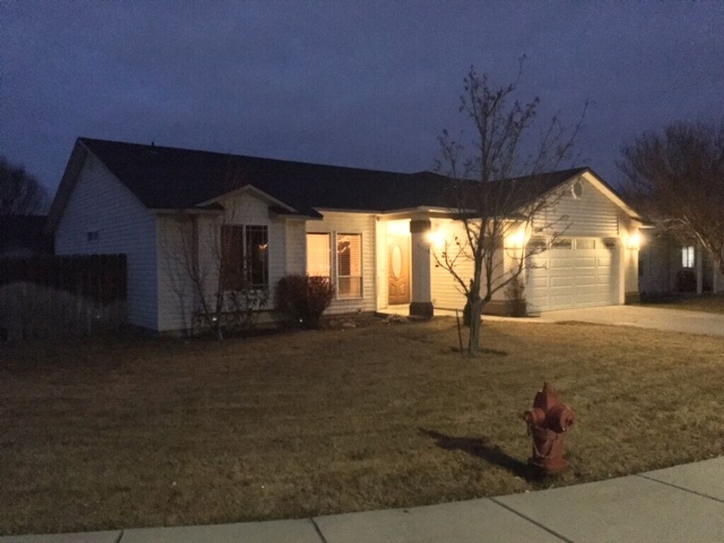 This wonderful home boasts a split bedroom design. Large master bedroom on one side of the home and two other bedrooms on the other side. Master bedroom has its own large walk in closet and master bath. Vaulted ceilings and open floor plan make this home a comfortable place to hang out. Tile floors and carpet throughout. Fully fenced rear yard with fruit trees. Nice large kitchen has all the appliances needed. Great location, close to shopping, parks, and schools. Corner lot. Vallivue School District. $35 application fee for all adults who will live in the home. Lease term will be 1 year.