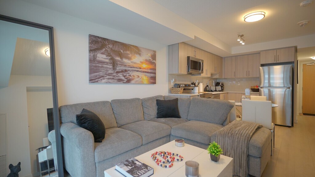 Modern 1-Bedroom Condo at Universal City - Sleek Living in Pickering's Premier Urban Hub! Welcome to Suite 907 at 1435 Celebration Drive, a beautifully designed 1-bedroom, 1-bathroom condo offering a perfect balance of style, comfort, and convenience in one of Pickering's most exciting new communities. Situated on the 9th floor of the sought-after Universal City development, this bright and airy residence delivers elevated living just minutes from the lakefront, GO Transit, and a vibrant retail scene. Step into an open-concept layout that maximizes both functionality and flow. The modern kitchen boasts sleek cabinetry, stone countertops, stainless steel appliances, and an inviting aesthetic - ideal for entertaining or relaxed weekday meals. The spacious living area leads to a private balcony, offering peaceful east-facing views and generous natural light throughout the day. The bedroom features ample closet space and a large window, while the spa-inspired 4-piece bathroom includes contemporary fixtures and finishes. Enjoy the added convenience of in-suite laundry, a storage locker, and access to first-class amenities, including: 24/7 concierge, fitness center, party & social lounge, rooftop terrace with BBQ and seating areas, indoor pool and spa, and visitor parking. Located just steps from Pickering GO Station, Pickering Town Centre, waterfront trails, parks, and a growing array of shops and dining, this unit offers exceptional value and connectivity in a dynamic, fast-growing neighbourhood! Included: Stainless Steel - Fridge, Stove, Microwave, & Dishwasher. Washer & Dryer. 1 Locker Storage Unit.