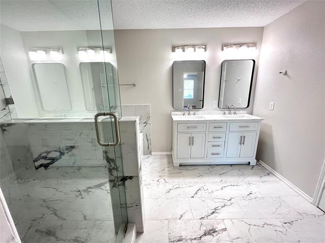 Beautifully renovated two-story single-family home featuring 4 spacious bedrooms and 3 full bathrooms, located in a family-friendly neighborhood in Rockwall. This home showcases brand-new vinyl flooring and fresh interior paint throughout. A guest bedroom with a full bathroom is conveniently located on the first floor. The expansive kitchen connects to both the living room and formal dining area, creating an ideal space for family gatherings and entertaining. A versatile game room upstairs adds extra fun and functionality—perfect for kids, movie nights, or casual hangouts. Upstairs, the master suite is thoughtfully separated from the two additional bedrooms. The fully renovated master bathroom includes a dual-sink vanity, separate shower, and a relaxing garden tub. Each bedroom is equipped with a walk-in closet for ample storage. Enjoy outdoor living in the private backyard, enclosed by an 8-foot fence, perfect for family activities. A greenbelt and jogging trails are located directly behind the property, adding to the home’s appeal. Conveniently situated near shopping, dining, entertainment, and major commuting routes.