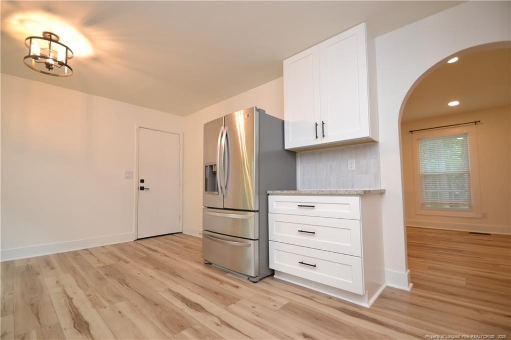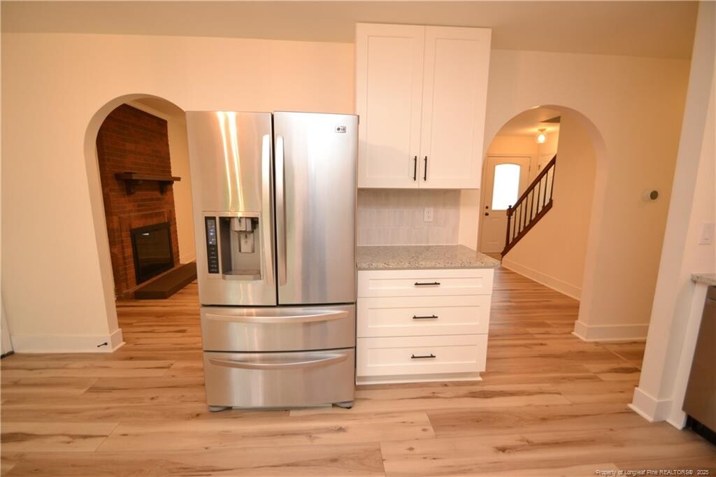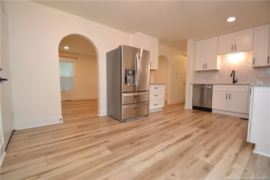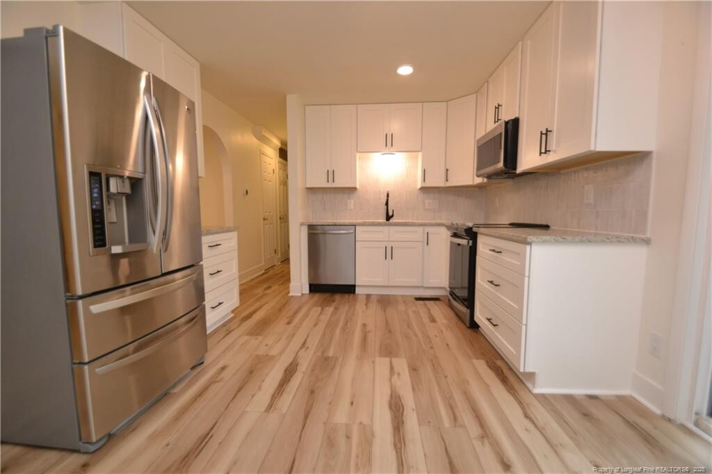 Come visit this classic charmer in the heart of Cary and prepare to fall in love! 1436 Lake Pine Drive is available immediately and offers that impossible-to-find combination of a fantastic location infused with an updated, easy living interior. The foyer opens on the right to a spacious family room offering luxury plank flooring, double picture windows, recessed perimeter lighting and a cozy fireplace with a masonry facade. Double arched entryways will next lead you into the kitchen and dining space. The kitchen showcases timeless, white Craftsman-inspired cabinetry adorned by beautiful granite countertops and accentuated by a custom tumbled-tile backsplash. The kitchen also features a deep-bowl undermout sink with a removable sprayer as well as a full suite of sleek, stainless-steel appliances including an apronless, smooth-top oven, a modern microwave and a French door refrigerator with ice/water in the door and double drawers. The kitchen seamlessly intertwines with an adjacent, perfectly-proportioned dining area that ensures the chef" will never be left alone during meal prep. It also offers direct access to the backyard via a sliding door on one side as well as access to the attached garage on the other. The primary bedroom includes luxury plank flooring, a picture window, a beautiful ceiling fan and a totally-custom, retro-inspired closet with built-in drawers, a mirror, jewelry racks and glass door knobs. Bedroom #2 also includes a picture window, luxury plank flooring and a closet with custom-built cabinetry and shelving. The full hall bathroom downstairs includes a tiled floor, dual sinks on a marble-topped vanity and a tub/shower. Next, you'll want to take a quick jaunt upstairs where you'll find bedrooms #3 and #4 as well as a second full bathroom. At the top of the staircase, you're greeted by a gorgeous, built-in cabinet with glass sliding doors. Both upstairs bedrooms are generously proportioned with amazing natural light, ample closet space, and easy access to a full hall bathroom with a tiled floor, a marble-topped vanity and a shower. Before wrapping-up your tour, be sure to visit the backyard! This is truly a beautiful space with tall shade trees, a paver patio, a large storage shed and more than enough space for all types of outdoor activities. The attached garage also includes a pedestrian door to the backyard as well as direct interior access, a "drop-down" area with cubbies, a bench and more."