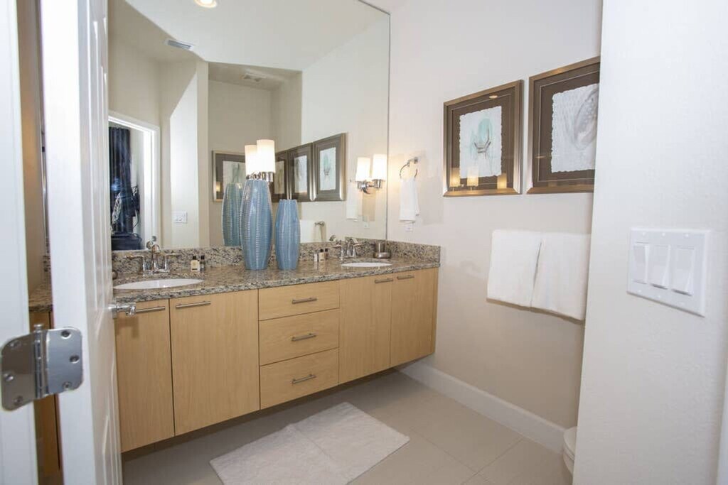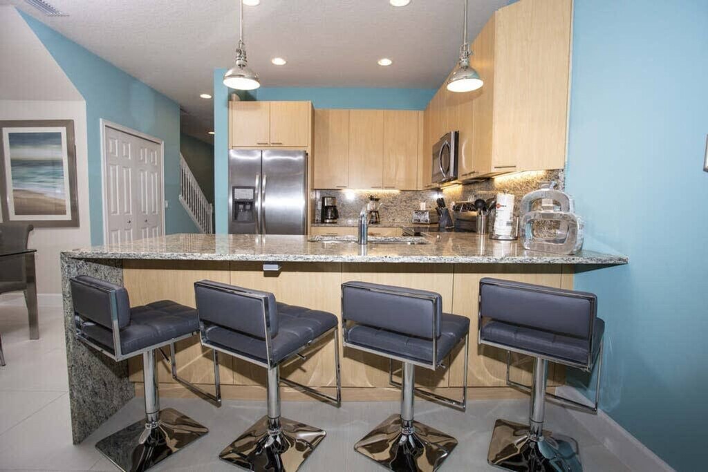 Discover your tranquil retreat in this 3-bedroom, 3-bathroom haven, showcasing a spacious living room seamlessly merging with the dining area and fully equipped kitchen. Rejuvenate in your private pool and bask in the comfort this home provides. Set in the serene Serenity neighborhood, this residence guarantees ultimate relaxation. Indulge in comfort in this 3-bedroom, 3-bathroom townhome. Generous living spaces blend seamlessly with the dining area and fully equipped kitchen, attending to your family's needs. The private, heatable pool on the patio beckons relaxation. A queen bedroom and bathroom on the first floor offer convenience. Upstairs, the master king bed suite promises relaxation, while another bedroom with two single beds boasts its own bathroom for privacy and comfort. The laundry room's convenience, equipped with a washer and dryer, adds to your ease. Stay connected with free Wi-Fi, park effortlessly, and revel in the welcome kit with basic bathroom and kitchen essentials. Heating the pool is a paid service and there is also a fee charged to use the barbecue grill. Situated amid 30 acres of untouched natural conservation, Serenity unveils breathtaking panoramas of Florida's tranquil waters and serene landscapes. Elevating the community's charm, a shared Club awaits guests. This exclusive haven hosts an array of offerings, including a resort-style pool that beckons relaxation, a fully equipped fitness center catering to health enthusiasts, and an inviting playground for the young and young at heart. Quiet hours are between 22:00 and 8:00. [SI]