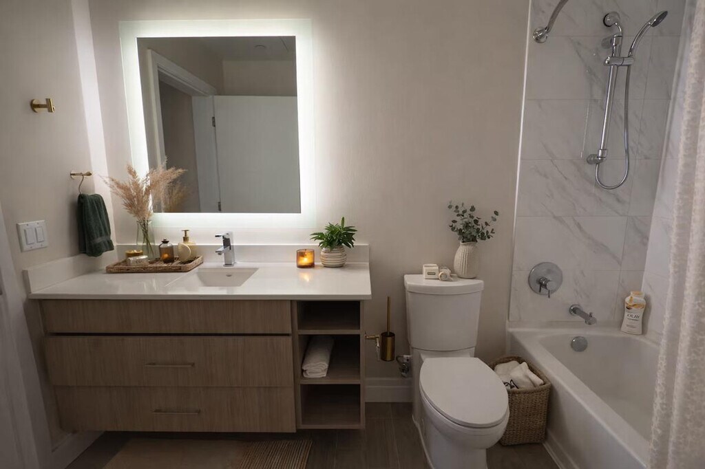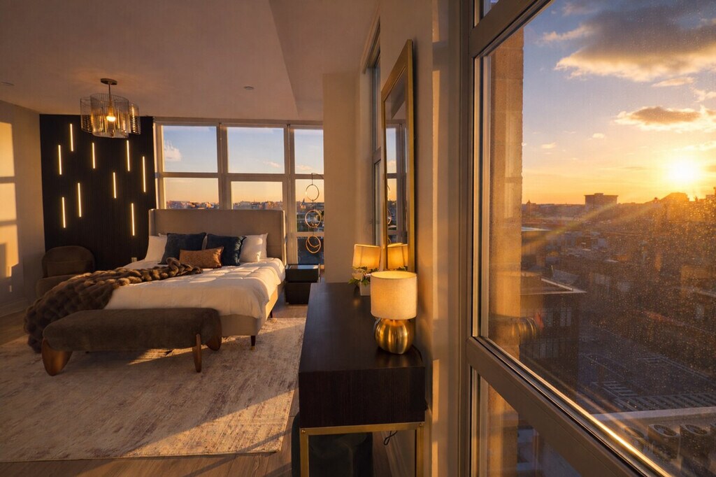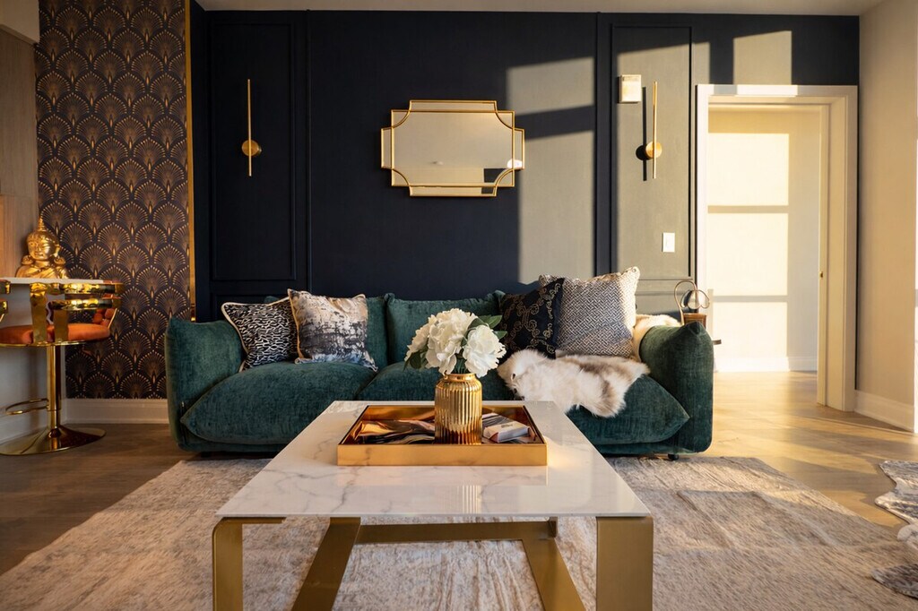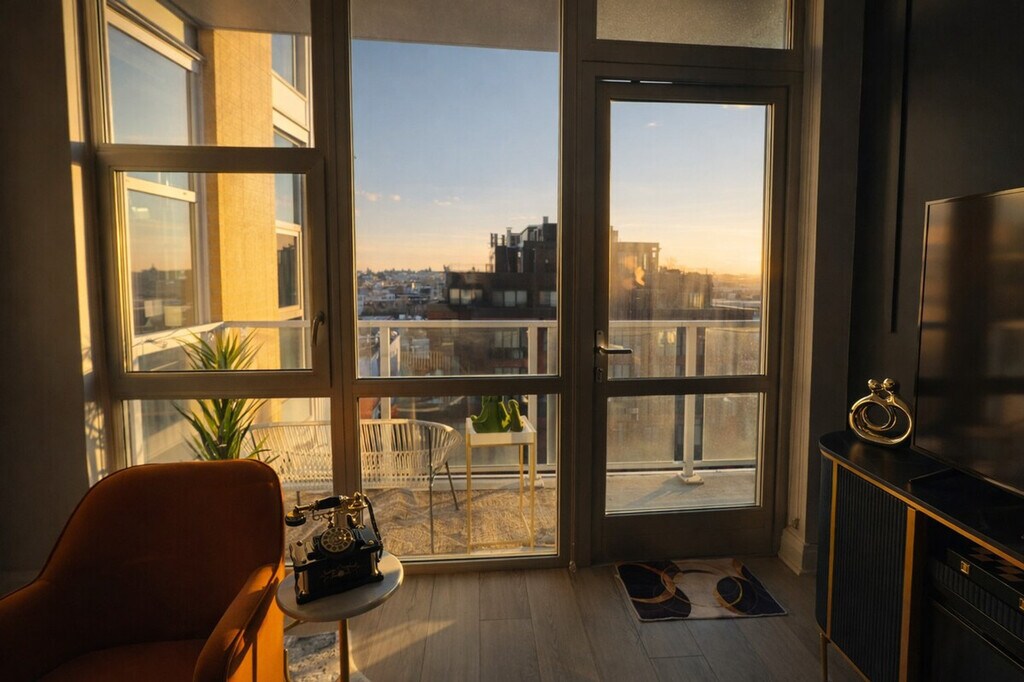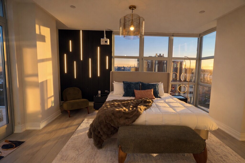 Feel at home in this designer apartment in DC, created for Gatsby lovers. This is a place for slowing down. Every detail is intentional, from the sculptural lighting and deep textures to the gold accents. A private projector turns nights into an experience. The mood shifts as the sun sets, and the space changes with it. It’s quiet, cinematic, and personal. Public parking is available; check SpotHero. Pets are welcome for an extra fee. This apartment is composed rather than just furnished. Before your arrival, you will receive a link with all the instructions you need. Please be sure to contact me before you arrive if you have not received it. [SI]