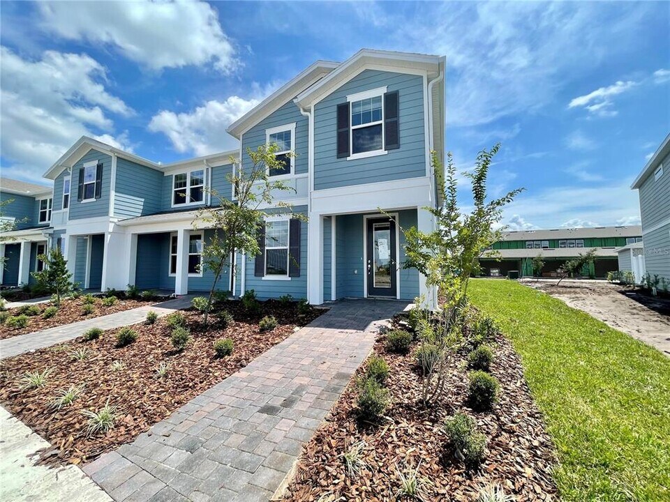 Beautiful townhome in a desirable end unit location with extra lawn space. As you step into the home,the open foyer leads you to a private bedroom and a full bath,providing flexibility and privacy for guests or family members. The well-appointed kitchen overlooks the spacious living room and dining area,creating a seamless flow for everyday living. Upstairs,you'll discover a grand retreat in the oversized primary suite featuring a well-appointed ensuite with dual sinks,a spacious shower,and a large walk-in closet. Two additional spacious bedrooms and another full bathroom are thoughtfully positioned off the hallway,providing comfort and convenience for the whole family. The laundry room is also conveniently located upstairs,making laundry day a breeze. PREMIUM UPGRADES: Wrought iron stair rail,Quartz countertops,upgraded custom cabinets with crown molding,beautiful ceiling fans in every room,pendant lighting in the kitchen,WiFi thermostat,and doorbell camera. Step outside through the living room and find a peaceful outdoor retreat in the Courtyard,accessible through a covered walkway that leads to the detached two-car rear garage adding practicality and convenience to your daily routine. Isles of Lake Nona is a gated featuring a resort-style pool with a splash pad,large community room,fitness center,multiple playgrounds,tennis courts,and basketball courts. This exceptional community is conveniently located just minutes away from shopping and dining,the vibrant Lake Nona Town Center,and the Lake Nona Medical City area and Laureate Park. With easy access to the 417,commuting to Downtown,Disney,or either coast has never been easier! Don't miss the opportunity to make this townhome your dream home at Isles of Lake Nona. MLS# O6385608