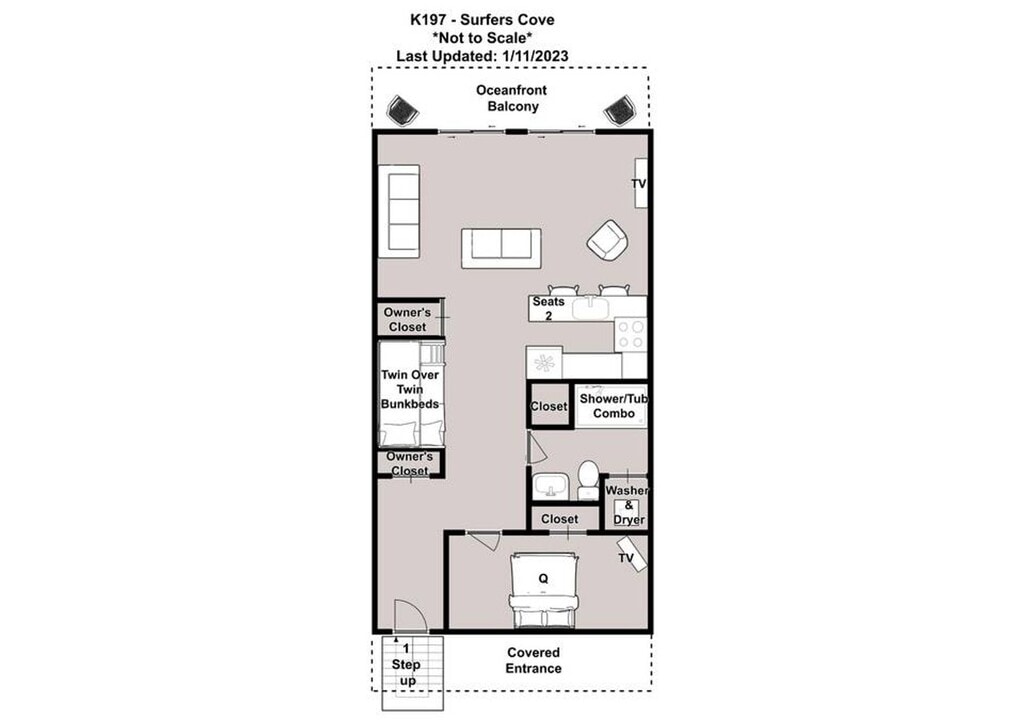***PLEASE REVIEW ALL LISTING DETAILS BELOW PRIOR TO SUBMITTING AN APPLICATION*** AVAILABILITY: Monthly rentals are available between January 1, 2026 - April 19, 2026 only. This rate does not apply to October 2026 - April 2027 rental. This property is primarily a vacation rental, and availability is subject to change as vacation rental bookings are made. The listing is updated weekly to reflect current availability. Vacation rental homes only accept monthly bookings from September to May; summer and peak season dates are excluded from monthly rentals. STAY REQUIREMENTS: The advertised rate applies only for stays within the specified date range and is subject to a minimum stay requirement of 60 days. For stays under 60 days or during peak season, the nightly market rate will apply. Monthly leases that meet or exceed 91 days are tax-exempt. FEES: The advertised monthly rent does not include the refundable security deposit (can be up to double based on application processing), applicable taxes, cleaning fees, linens, travel or renters’ insurance, or other optional fees. Monthly or periodic cleanings may be arranged through Bryant Real Estate at the tenant’s expense. Homes that allow pets require a non-refundable $400 pet fee per pet. Cats are not permitted. RATES & PAYMENTS: Payments due at move-in versus monthly rental payments will be decided by the agent and will be based on the duration and total cost of the lease. A detailed breakdown of payment amounts, and due dates will be provided when the lease is drafted for signature. In the event of a discrepancy or conflict between the monthly rate stated here and the rate on an online travel site or third-party booking agent, the greater rate will apply. QUALIFICATIONS: All applicants and occupants aged 18 or older must complete an application for the group to be processed. Lease holder(s) must qualify independently without a co-signer in order to be approved. No Students. Bedding Recap: 1 Queen, 1 Twin Bunk Bed Parking: TWO parking passes are included with reservation. One assigned spot, one in open lot across street. Prohibited: Smoking, Pets, Golf Carts, EV charging, Boats and trailers are prohibited. Mail and package delivery to the property is prohibited. There is no access to the mailbox, if wanting to receive mail you will need to open a P.O. Box. DESCRIPTION: Enjoy the swell and some good breaks at “Surfers Cove” located in the Riggings Complex on the southern end of Pleasure Island. This ground level condo makes it feel like you are riding the waves from the living room. The primary bedroom has a queen bed and has access to a hall bathroom with a shower/ tub combo, vanity, and laundry closet. In the hallway alcove, twin bunk beds provide additional sleeping areas. The living area provides an astounding ocean view through the sliders and leads out to a covered deck. There is assigned parking for 1 car near the unit and 1 additional space in the overflow lot across the street from the complex. Enjoy a swim in the oceanfront pool or a stroll on the beach, using the private beach access for guests of The Riggings. The beach re-nourishment project prohibits anyone walking or sitting on the sandbags, they protect our beach. *Please keep in mind that if you are renting a property with a pool during the off-season, it may not be open or available. Pools are usually open from mid- May to September, but dates can vary based on weather, permits, HOA guidelines, inspections, improvements, and unforeseen events. For more detailed information on specific pools, please feel free to contact our office. DISCLAIMER: For the security and protection of the home, some properties may have exterior security cameras installed on site. These devices are not inward facing and do not monitor interior spaces. If present, they are used solely to help safeguard the property and its amenities, promote guest safety, and support local law enforcement if necessary.