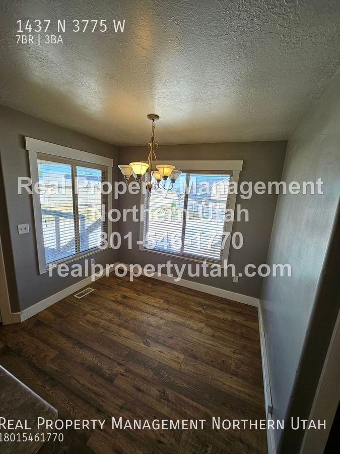 There is currently a 7 Bed 3 Bath Home for rent with 2,850 sq ft listed at 1437 N 3775 W. It is Available Now.