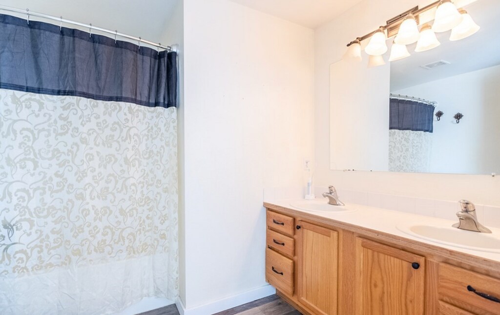 4 bedroom 2.5 bathroom home located close to downtown on the South side of Moses Lake. Exterior features include: mature landscaping with underground sprinklers, 2 car garage, fenced backyard, concrete back patio, LVP Flooring, painted kitchen cabinets, barn door over pantry, laundry & 1/2 bath on main, kitchen appliances included, central heat/air. Pet Friendly with fees, 2 pet max, Tenant pays WSG, GCPUD & Gas. *Furnishings not included* Renters Insurance Required.