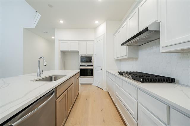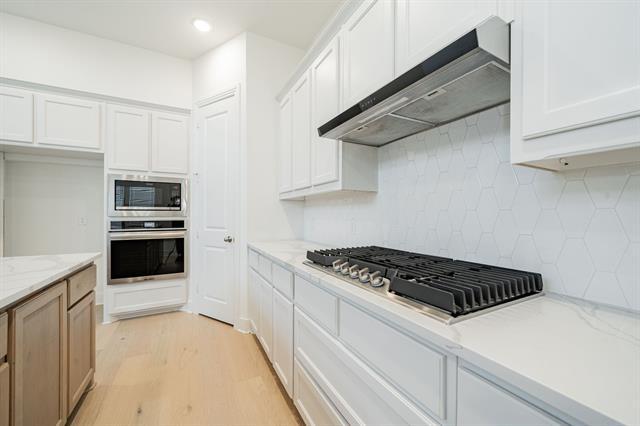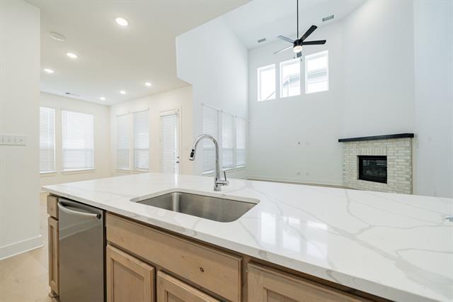 Beautiful Highland Homes Build with Designer Finishes & Spacious Layout!? This stunning home, featuring a white brick exterior, offers exceptional style and comfort with an open-concept floorplan, soaring ceilings, and an abundance of natural light. Enjoy cozy evenings by the fireplace and effortless entertaining in the spacious living areas. The gourmet kitchen is a showstopper, complete with a large island featuring natural wood tones, quartz countertops, crisp white cabinetry, under-cabinet lighting, built-in trash pull-out, 5-burner gas cooktop, and built-in oven. A built-in glass hutch adds elegance and extra storage in the dining area. Retreat to the luxurious primary suite with a charming bay window sitting area. The spa-like bath includes dual vanities, a free-standing soaking tub, and a separate shower. Step outside to a HUGE covered back patio. It is perfect for relaxing or hosting friends. Inside, enjoy your own dedicated entertainment room for movie nights. Community amenities include a pool, pickleball court, and scenic walking trails. Don’t miss this beautiful home with high-end finishes in a vibrant neighborhood!