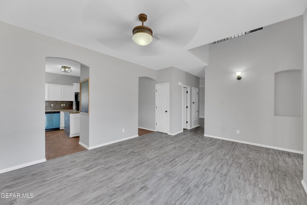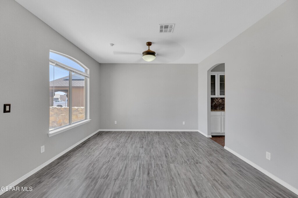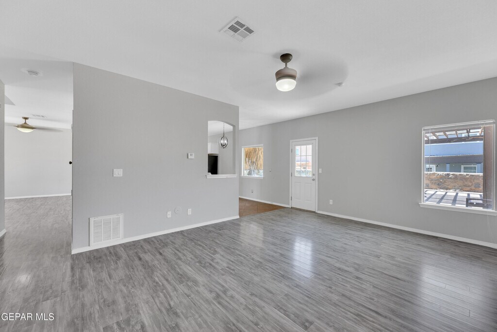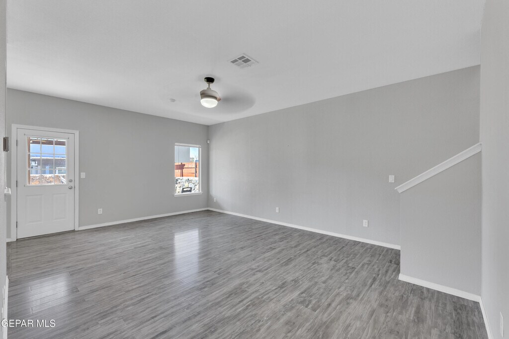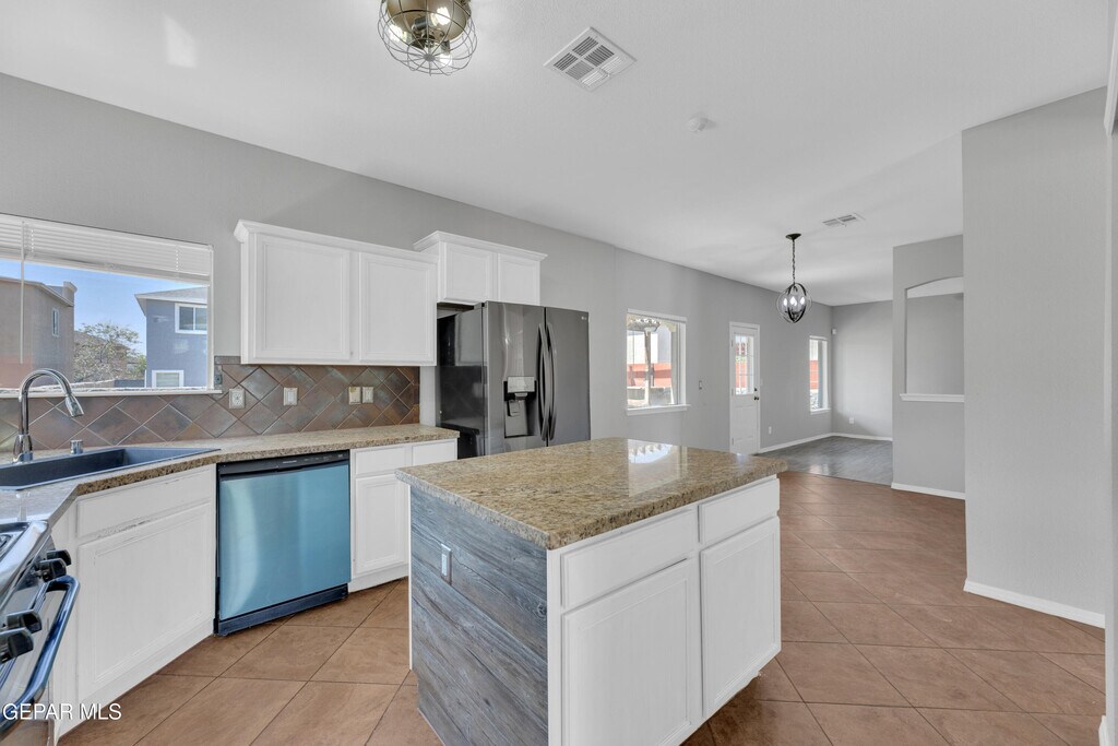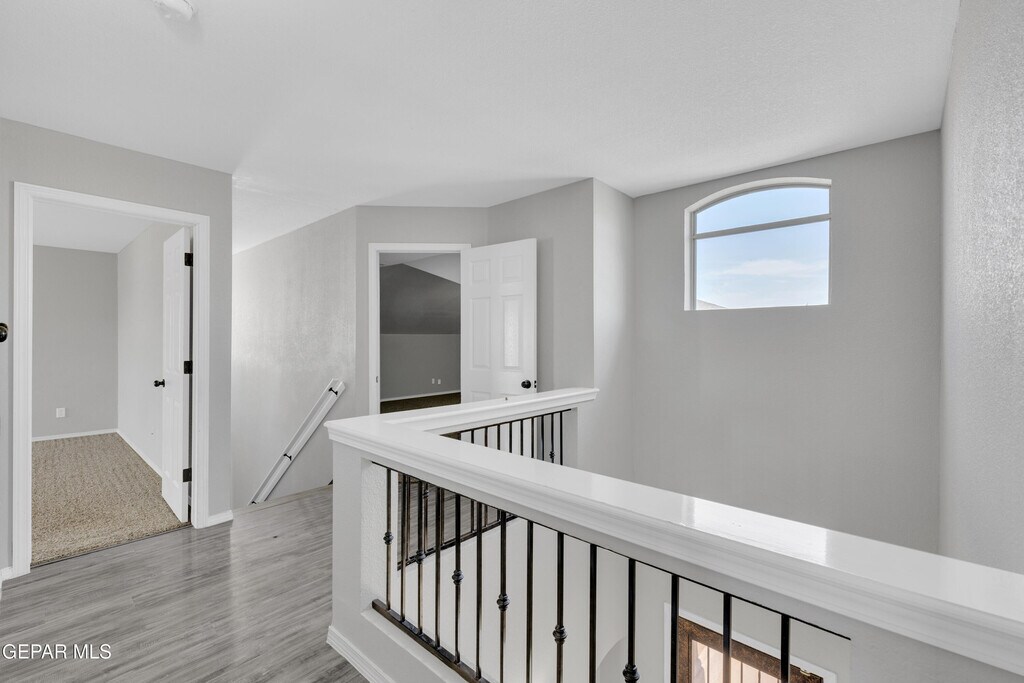 This beautiful move-in residence offers 3 spacious bedrooms,a large upstairs bonus room that can easily be converted into a 4th bedroom,and 2.5 bathrooms. Enjoy the flexibility of both a formal living room and a cozy family room,providing ample space for entertaining and everyday living. The dining area flows into a kitchen featuring stainless steel appliances,a functional island,and sleek granite countertops - perfect for cooking and hosting. Upstairs,the primary suite offers a peaceful retreat with a private balcony and a luxurious bath,complete with a separate shower and soaking tub. Fully landscaped front and back,with the backyard showcasing a charming pergola - ideal for outdoor relaxation. Conveniently located just minutes from local schools and Fort Bliss,this home is truly a must-see. Schedule your tour today!