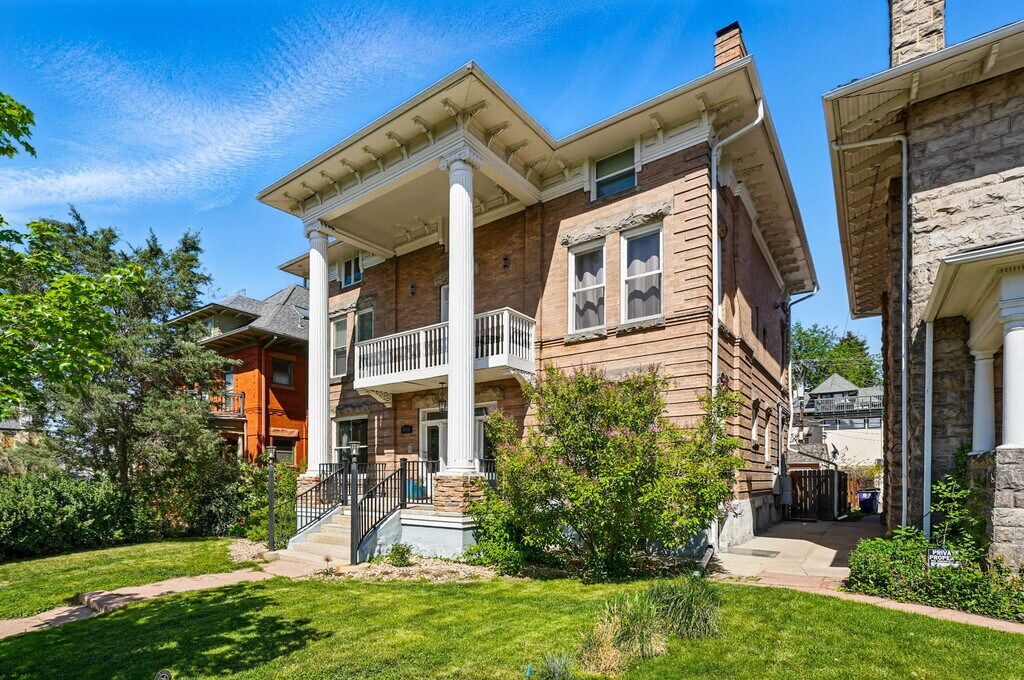 A rare gem in the historic Franklin Mansion! Built in 1898 and beautifully reimagined for today’s lifestyle, this home captures the best of Denver’s charm and modern convenience. The main level impresses with tall ceilings, oversized windows, rich hardwood floors, and exposed brick that highlights its timeless character. The inviting living space centers around an original fireplace mantle, flowing seamlessly into a stylishly updated kitchen featuring marble countertops, stainless steel appliances, and an undermount sink—perfect for entertaining or everyday comfort. A bright and spacious half bath on the main floor adds both convenience and charm. Downstairs, two generously sized bedrooms each feature their own fully remodeled en-suite bath, offering privacy and comfort for residents or guests. A dramatic two-story built-in bookshelf creates a stunning architectural focal point at the landing. Step out through your private rear entrance to enjoy your own deck, opening to a shared courtyard with a community garden, fire pit, and outdoor dining area—ideal for relaxing or gathering with neighbors. With a private garage and prime location just one block from Cheesman Park, this home is the perfect balance of historic soul and modern ease. Utilities included: water. Small dog friendly. Date Available: Nov 10th 2025. $3,000/month rent. $3,000 security deposit required. Please submit the form on this page or contact Nathan Church at to learn more. This property is managed by a responsible landlord using Avail landlord software.