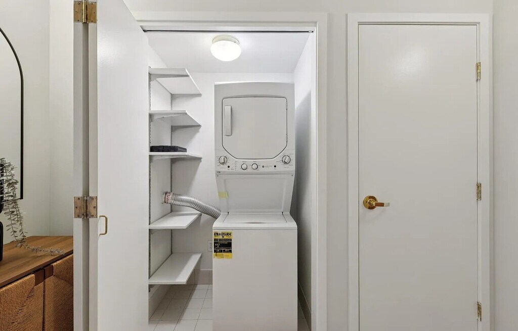 This chic and sunny large one bedroom condo located in the Arundel, a modern concrete and steel doorman elevator building, has an open floor plan, in unit laundry, private parking space in garage and a large deeded locked storage room. Maple hardwood flooring throughout. Building amenities include a rooftop deck with panoramic views of the Bay and the City, and a rear common garden. The location is unbeatable. The best of city life awaits you on Polk Street just steps from the building with fabulous restaurants, wine and coffee shops, fitness studios, charming local stores and your destination for deliciousness