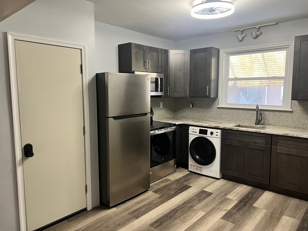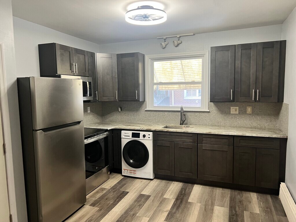 Beautifully updated 3-bedroom, 1.5-bath home in a nice neighborhood! Enjoy a brand-new kitchen with modern appliances and a renovated bathroom with stylish finishes. Features an open living area, hardwood floors, in-unit laundry, and street parking. no backyard and basement is unavailable. Conveniently located near schools, parks, and shopping, perfect for families seeking a comfortable, low-maintenance home!