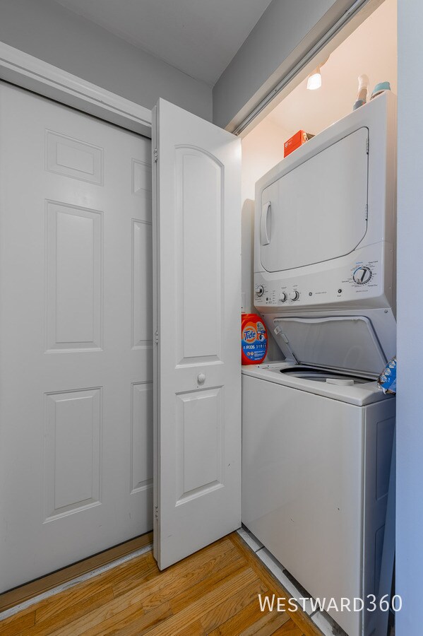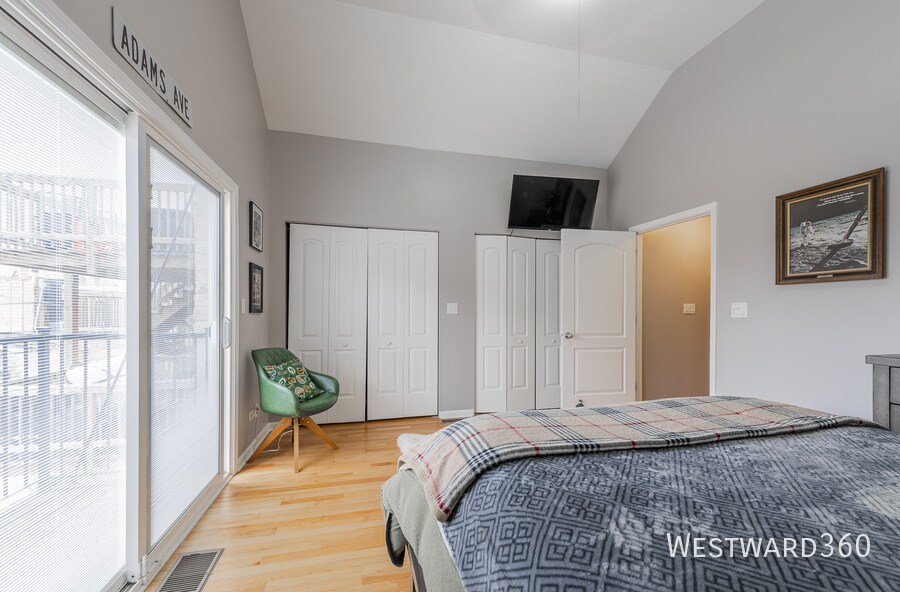 Rarely available duplex up with included garage parking, 2 private decks, beautiful vaulted ceilings in bedrooms. Enjoy hardwood flooring throughout, large eat-in kitchen with pantry, in-unit washer/dryer. Plenty of storage. This unit feels like a single family home. Ideal Noble Square location that is walking distance to Eckhart Park, Division CTA station, and excellent dining: Tuk Tuk, Tortello, and so much more.