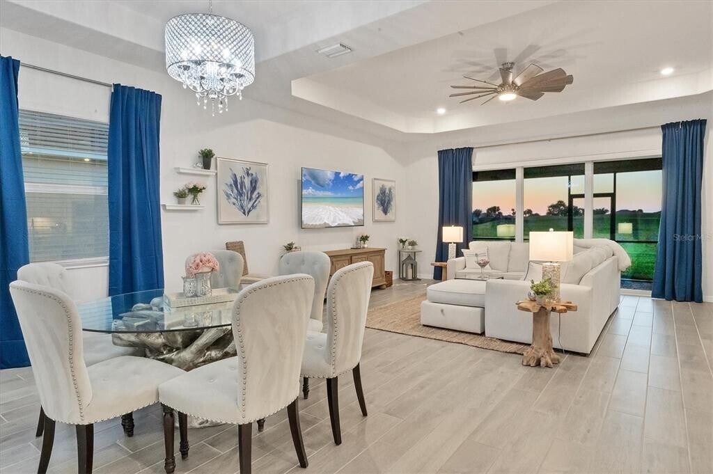 Welcome to your luxury escape in one of the most sought-after locations within Heritage Landing Golf & Country Club. This beautifully appointed 4-bedroom,3-bathroom Maria floorplan offers a rare opportunity to experience the ultimate in seasonal living,combining upscale comfort with exceptional privacy. Located in a quiet enclave of just 16 homes,this residence delivers the perfect blend of resort-style amenities and serene surroundings. Enjoy peaceful mornings with wooded views—no homes directly in front or behind. Positioned away from traffic yet within walking distance to the community's premier amenities,this home offers both tranquility and convenience. Step inside to discover high-end finishes throughout,including elegant plank tile flooring,designer lighting,and a soft,neutral color palette. The open-concept layout seamlessly connects indoor and outdoor spaces,with expansive sliding doors leading to a spacious lanai—ideal for lounging,dining,or simply enjoying Florida’s breathtaking sunsets. The generous backyard offers ample room for sunbathing,relaxing,or entertaining guests—your own private oasis in paradise. Golf Membership Included! This rental comes with a full golf membership to Heritage Landing’s championship Gordon Lewis-designed golf course,ranked among Florida’s best public courses. Alongside unlimited golf,your stay includes access to a world-class lineup of community amenities: A newly constructed clubhouse with upscale dining,a full bar,and event spaces A resort-style pool complex featuring lap lanes,a beach entry,and spacious sundeck An outdoor café and bar for casual bites and drinks A state-of-the-art fitness center,group exercise studio,and full-service spa Recreation courts including six Har-Tru tennis courts,six pickleball courts,and two bocce ball courts Situated in the desirable Burnt Store Corridor,this location offers easy access to Charlotte Harbor,the Gulf of Mexico,and is just a short drive from both Punta Gorda and Fort Myers airports. Whether you’re a snowbird,golfer,or beach lover,this seasonal rental promises a relaxing,resort-style lifestyle in sunny Southwest Florida. **Owner retains garage space MLS# C7510254