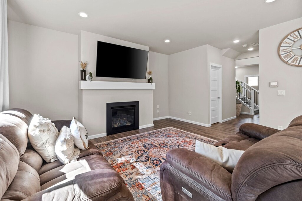 4 Bedrooms, 2.5 Bathroom home with a 2 car attached garage with an open-concept layout: Seamless flow between kitchen, great room, and dining area Kitchen: Generous size with full-height tile backsplash, granite or quartz countertops, soft-close cabinets, and stainless steel Whirlpool appliances Living Area: Includes a cozy gas fireplace with box shelf mantle Upstairs: All 4 bedrooms, utility room, and a luxurious owner’s suite with en-suite bath and spacious walk-in closet Climate Control: Heat pump for efficient heating/cooling Landscaping: Fully landscaped front and back yards ‘Pets on a case-by-case basis with deposit. All occupants 18 and over must be screened ($40 fee each). Lease holder requirements: minimum 650 credit score and minimum income of 3x rent; first month rent and deposit equal to one months’ rent required in certified funds at move-in.’