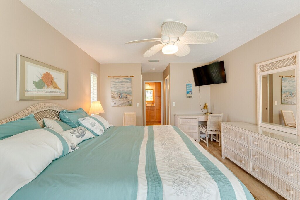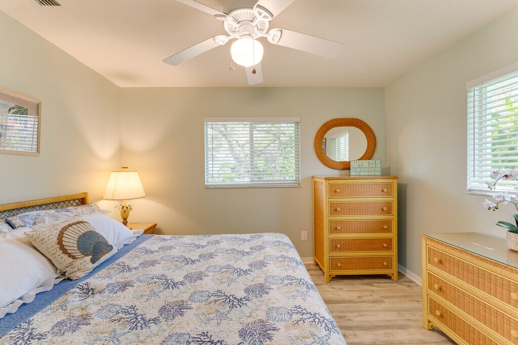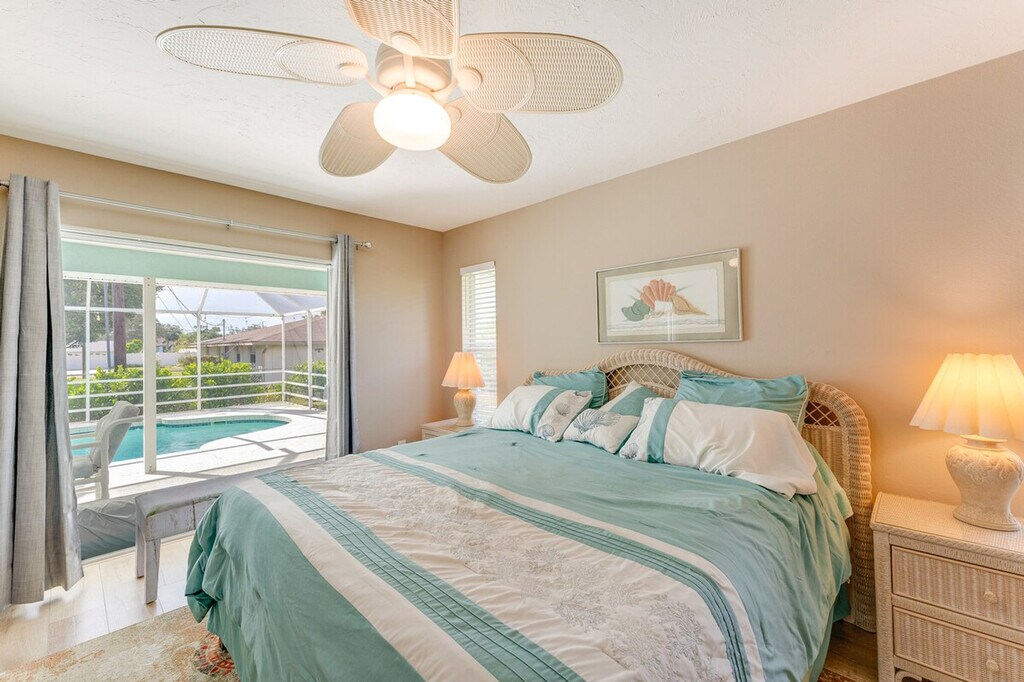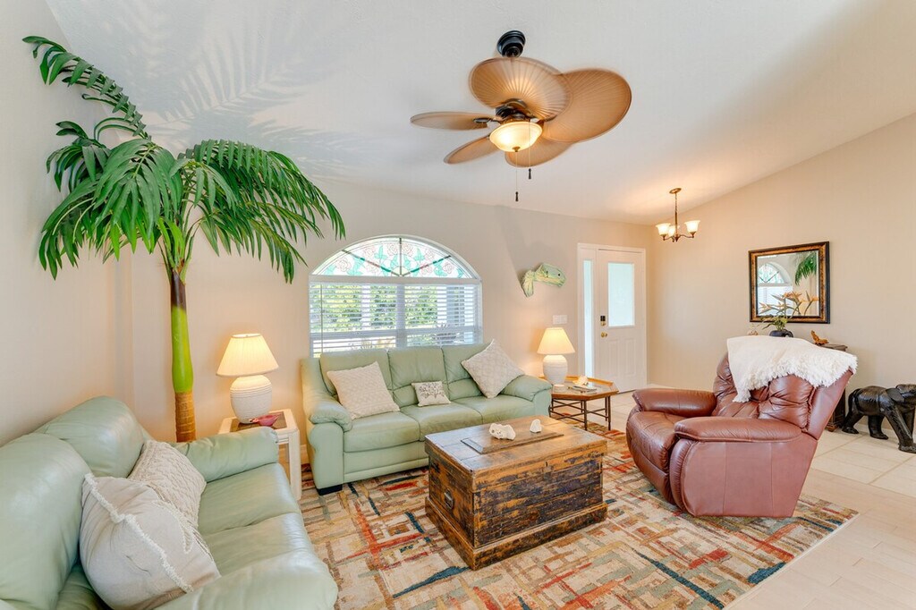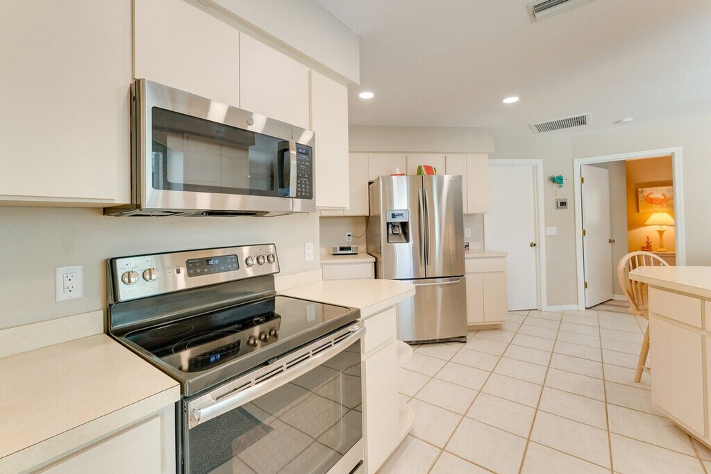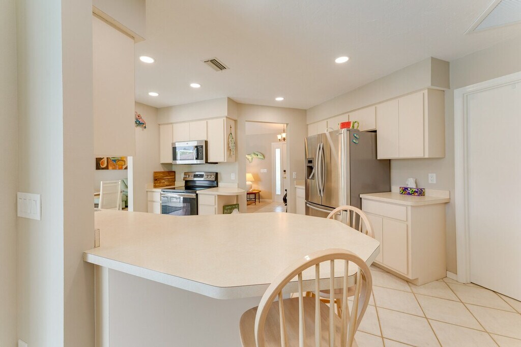 Indulge in a serene retreat at this inviting 3-bedroom, 2-bathroom vacation rental house in Venice, FL. Feel at home relaxing by the private outdoor pool. This house features a private lanai, gas grill, central air conditioning, and a washer and dryer. The outdoor living space includes a patio with an outdoor dining area, a year-round outdoor pool (heated, depth 3’-9’), lounge chairs, a private yard, and beach towels and chairs. Inside, you'll find 2 Smart TVs, a walk-in tub, a dining area, coastal decor, a desk workspace, and an en-suite bathroom. The kitchen is equipped with stainless steel appliances (stove/oven, fridge, microwave, dishwasher), drip and Keurig single-serve coffee makers, a Crockpot, cooking basics, dishware and flatware, a toaster, and a blender. There is an optional pool heat fee of $20/night (plus fees and taxes, paid pre-trip, applied to entire stay). Soak up the sun on the nearby stunning beaches like Venice Beach or Caspersen Beach. Explore the wonders of nature at Myakka River State Park, or immerse yourself in culture with a visit to the historic downtown area. There is a doorbell camera facing the front entryway. Smoking, pets, events, parties, and large gatherings are not allowed. Guests must be at least 25 years old to book. The property requires a small half step to enter, and there is no fence around the pool. Be aware that there is no child fence inside the lanai. [SI]