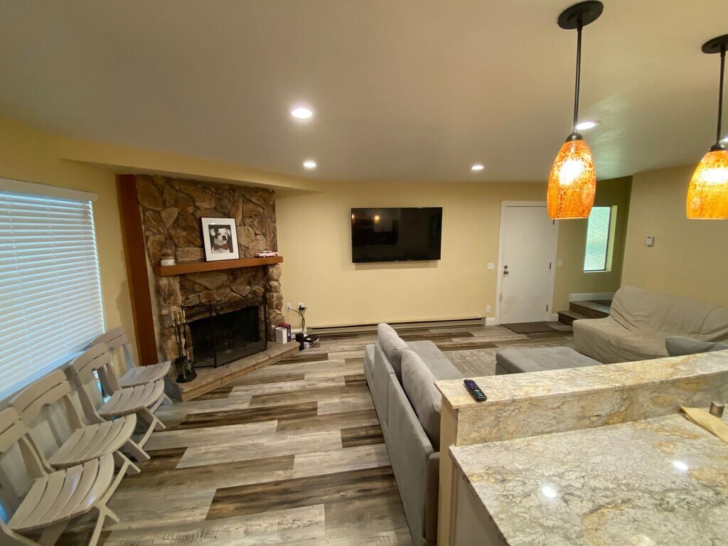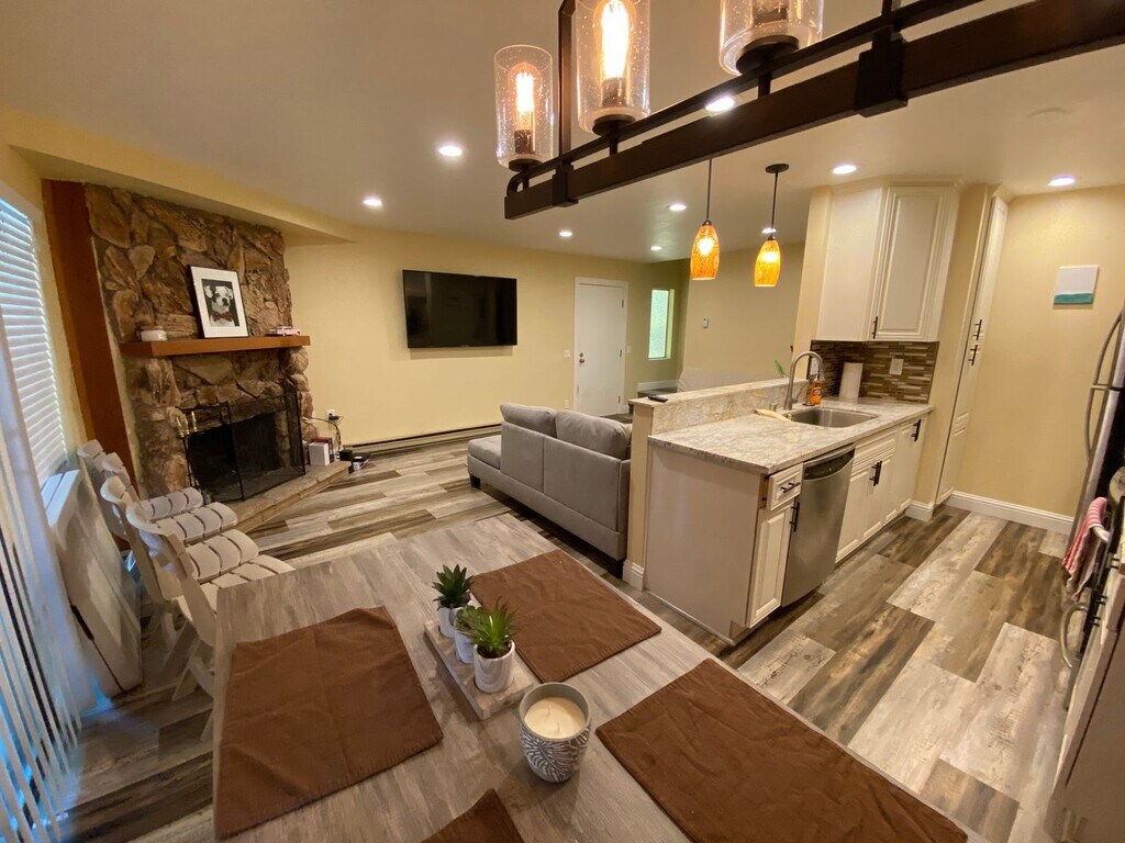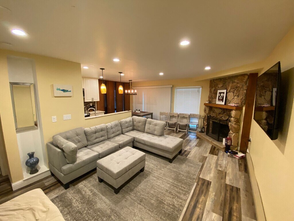 Fully Remodeled Townhome with 2 bedrooms plus fully finished loft. Over 90K in upgrades. Corner lot, backing to the forest. Updated bathrooms and kitchen with granite countertops & newer appliances. LVP flooring throughout. Living room with wood burning fireplace. Upstairs laundry closet. Master bedroom with private balcony overlooking forest. Garage with a lockable storage. Great HOA with swimming pool, 2 hot tubs, clubhouse with sauna, gym, pool and ping pong table, game area, lounge and meeting room. Complex is in walking distance to Heavenly Ski Resort, marina, beaches, restaurants and shopping. Just 30 min walk to the village. It is a perfect Tahoe getaway.