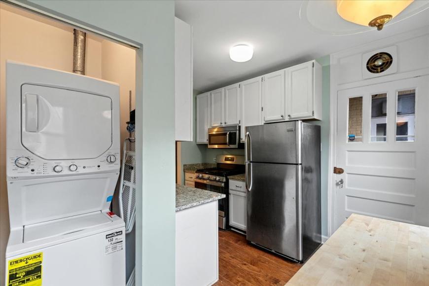 APS94381803 - Bright and spacious 2-bedroom in a classic Edgewater Glen courtyard building. Lots of vintage charm with arched doorways, original woodwork, high ceilings, and hardwood floors. Cozy wood-burning fireplace, in-unit laundry, new windows, new back porch, and fresh paint. Beautiful courtyard, easy street parking, and a super dog-friendly neighborhood with parks nearby. Storage unit included.
