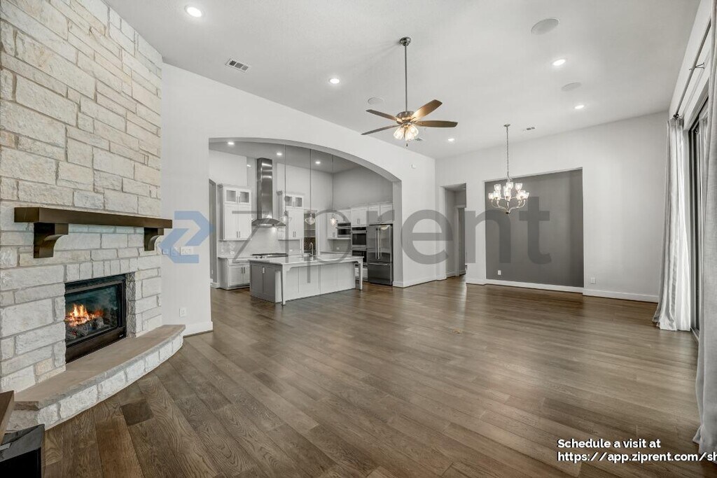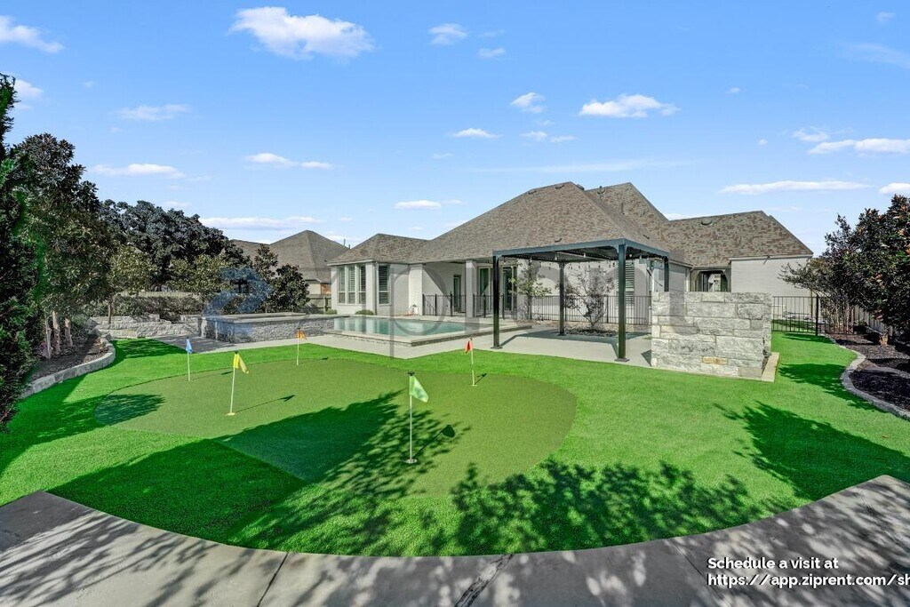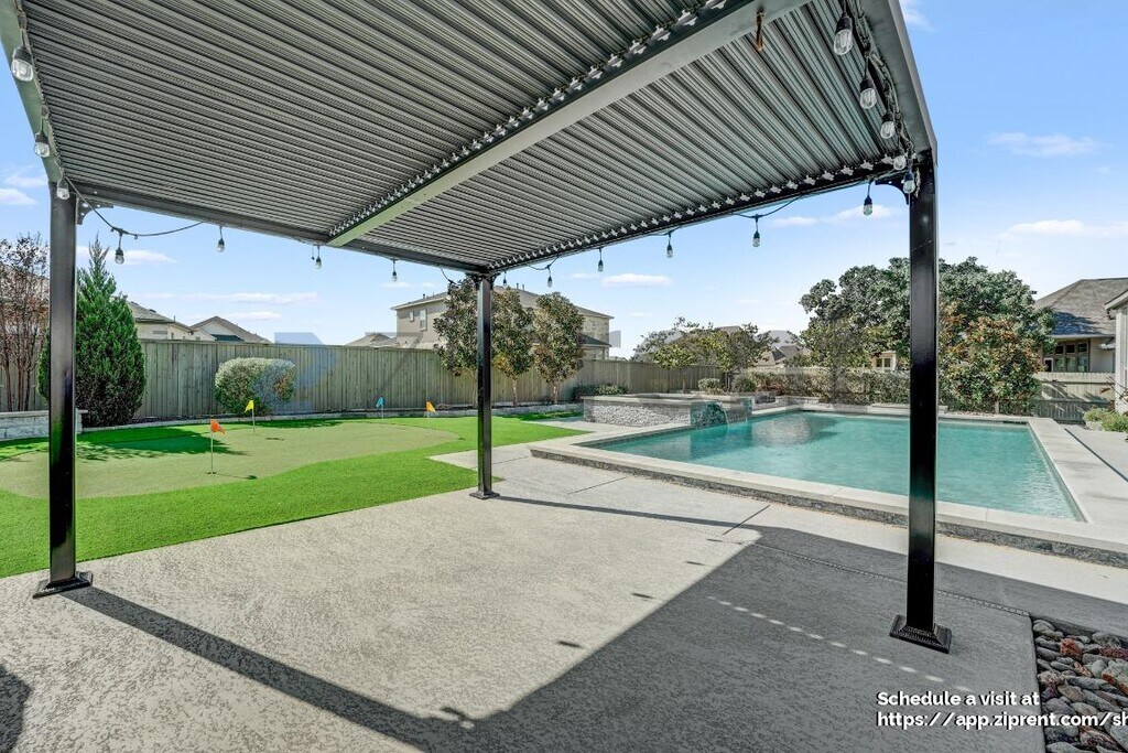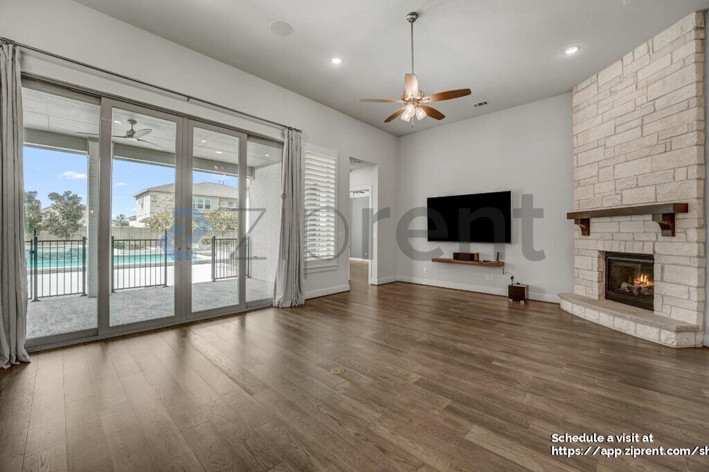 This property is available. Please inquire on this site to schedule a showing. Welcome to 144 Arbolado Loop in Liberty Hill’s award-winning Santa Rita Ranch! This elegant 4-bedroom + dedicated office, 4.5-bath home blends modern luxury with smart-home convenience and resort-style living. WIth short-term and long term leases available, the open-concept design features high ceilings, wood flooring, and designer finishes throughout. A chef’s kitchen with quartz countertops, stainless appliances, gas cooktop, and a large island opens to a bright living area with built-in surround sound and a mounted TV. Enjoy three ensuite bedrooms, perfect for family or guests, plus a spacious primary suite, soaking tub, walk-in shower, and dual vanities. The media room includes integrated surround sound and a mounted TV for movie nights or gaming. This home is fully smart-enabled—control lighting, climate, door locks, and appliances through a dedicated app. Mounted ceiling Wi-Fi ensures seamless connectivity, and exterior security cameras provide peace of mind. Step outside to your private pool, raised spa, and putting green, surrounded by a low-maintenance yard and covered patio ideal for entertaining. The 3-car+tandem garage with epoxy flooring, energy-efficient design, and access to top-rated Liberty Hill & Georgetown ISD schools completes this remarkable property. Located near the new Bar W development, you’ll soon enjoy brand-new shopping, dining, and entertainment options just minutes away, along with easy access to Hwy 29 and Ronald Reagan Blvd for quick commutes to Georgetown, Leander, Cedar Park, and Austin’s tech corridor. Smart. Stylish. Convenient. Your perfect Liberty Hill retreat awaits! Available: NOW Heating: ForcedAir Cooling: Central Appliances: Dishwasher, Microwave, Range Oven, Refrigerator Laundry: In Unit Parking: Detached Garage, Attached Garage, 4 spaces Pets: Dogs Allowed, Cats Allowed Security deposit: $4,900.00 Included Utilities: Internet, Landscaping Additional Deposit/Pet: $500.00 This property has a home security system. Disclaimer: Ziprent is acting as the agent for the owner. Information Deemed Reliable but not Guaranteed. All information should be independently verified by renter.