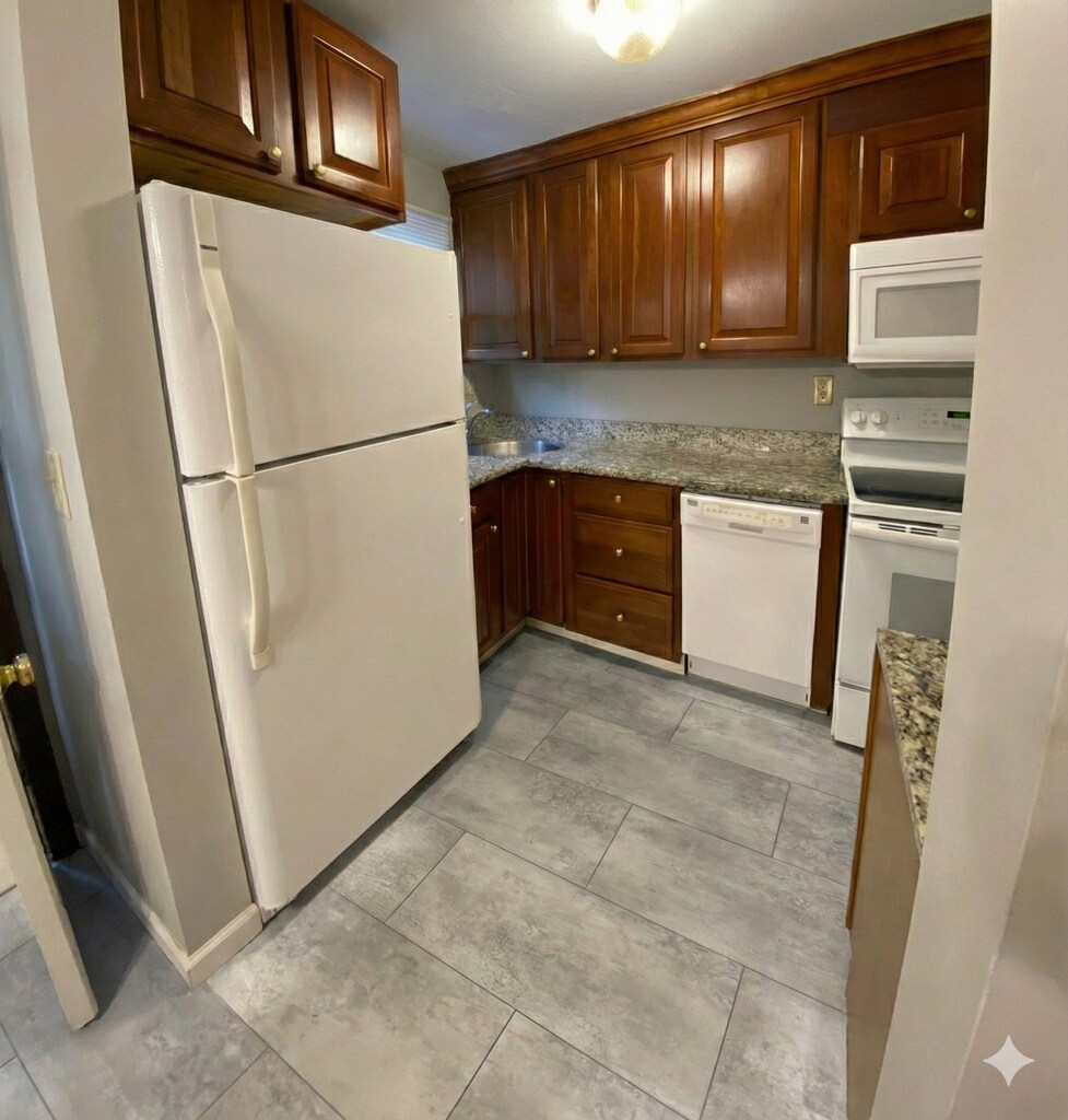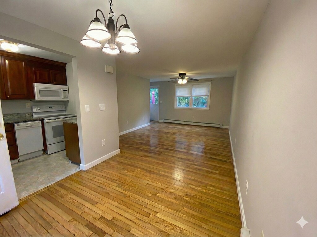 Condo/Townhouse for Rent: 2 Bedrooms, 1 Bathroom, combined Living/Dining Room, and a fully equipped Kitchen featuring a stove/oven, refrigerator, microwave, and dishwasher. HEAT & HOT WATER INCLUDED! End-unit, 2 floors, 768 square feet, 2 assigned parking spots. On-site laundry facilities and large yard with picnic areas. Ideally located close to the town center, beach, shopping, restaurants, and train station. Available January 1, 2026. Security, first month & last month required. Credit check & income verification required. No pets or smoking allowed.