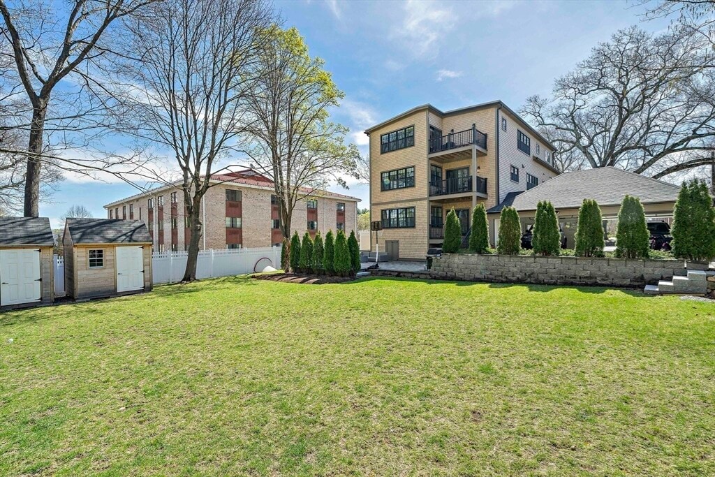 This stunning three-bed luxury condo in the heart of Linden Square offers both comfort and convenience. Comprehensively renovated in 2023,the home features a versatile layout featuring three beds plus a dedicated office. A welcoming entry and gracious hallway lead to two guest beds,one with a private outdoor deck. Nearby,you'll find a full bath and an additional half bath,before arriving at the expansive primary suite complete with ample closet space. Toward the rear,the space opens to a bright & inviting living room and dining room area,seamlessly connected to a beautifully designed kitchen with high-end Miele appliances and custom millwork throughout. Just off the main living area,step onto a second private deck w/gas grill hookup,overlooking the shared backyard—perfect for relaxing or entertaining. Additional features include in-unit laundry,a generously sized storage shed,and garage parking,all just moments from Wellesley Square T and the area’s top shopping and dining. MLS ID 73506334