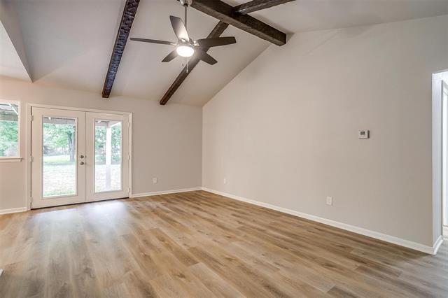 Beautiful completely remodeled 3-2-2 on desirable established street in Burleson- Much Sought after Burleson ISD Home has cathedral ceiling in living room Ceiling Fans throughout French doors leading out to covered patio. New plumbing, new composition roof-granite countertops in remodeled kitchen and bathrooms. New vinyl plank flooring throughout home. 2 Car Garage-Fenced backyard-Come see this lovely home and you can be moved in and start the new year in this wonderful home.