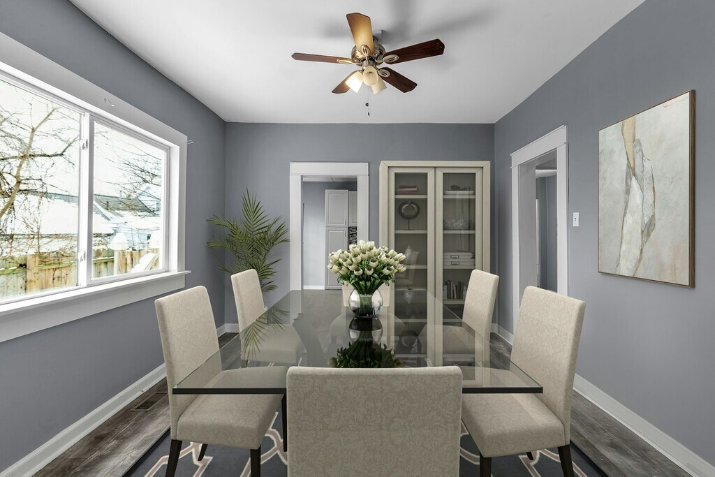 Large, newly renovated 4-bedroom detached two-story house available to rent in a quiet, family-friendly neighborhood. Features updated hardwood floors throughout, with beautiful eat-in kitchen. House has convenient in-unit laundry hook-ups. Stainless steel refrigerator and oven/range included. House also features spacious dining and family room along with 4 sizable upstairs bedrooms. Also boasts separate yard with side patio. $1,500/month + security deposit. Pets allowed with an additional fee. Utilities not included. House is non-smoking. Other features include: - large family room - bright dining room - additional living area upstairs - private outdoor space Please click here to submit an application to rent! Showings available to begin January 1, 2026 Background and credit check will be performed. References to previous rentals will be checked. Application fee required. At the time of lease signing, security deposit and first month’s rent are due. One-year lease minimum required.