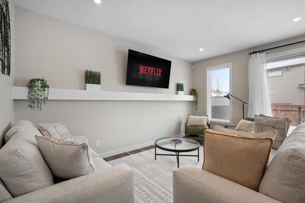 The advertised rate of C$7,538/month is the lowest available price, based on a 1 month(s) stay with a move-in date of April 10, 2026. Rates vary depending on the duration of stay, season, and other parameters. For exact pricing and additional pricing components, please visit our website and enter your desired move-in and move-out dates. The rate is applicable when billed upfront; it can be higher if billed in multiple payments. Feel at home in this spacious luxury home in Calgary, built for fun, relaxation, and unforgettable memories. Host game nights, enjoy movie marathons, or belt out tunes in the karaoke room—there’s something for everyone in this inviting space. The apartment boasts multiple living rooms equipped with a pool table, air hockey table, karaoke room, and a library with over 100 books. The modern kitchen is fully equipped with stainless steel and custom appliances, including a commercial-grade refrigerator and Keurig coffee maker. Enjoy meals in the large dining area with island seating and bar stools. Optional upgrades include a National Park Entry, Welcome Basket, Birthday Decor Package, Romantic Wine and Flower Package, Spa at Home Package, Movie Night Upgrade, Christmas Tree and Decor, Halloween Decor and Pumpkin Carving Package, Winter Cozy Package, Beer Tasting Kit, Diffuser and Aroma Set, Additional Bedding and Sleeping Arrangements, Grocery Pre-Stocking Service, and Pet Friendly Package. Two-car garage parking is provided, and free street parking is available in the area. Conveniently located, this home offers easy access to key locations such as the Blue Devil Golf Club, Fish Creek Park, and Shawnessy Shopping Centre. With quick access to major highways, trips to Banff, Kananaskis, and Canmore are a breeze. Nearby, you'll find great restaurants and cafés like Starbucks and The Canadian Brewhouse. Check-in and check-out are fully self-service, with detailed instructions provided for a seamless experience. A $250 CAD fine will be charged if smoking occurs, following the no-smoking policy. Quiet hours are from 10 pm to 7 am, and a strict complaint policy is in place, with eviction after the second complaint. No parties, drugs, excessive drinking, or loud music are allowed. Unauthorized late check-out will result in additional fees. The home includes an office and den area, providing a comfortable space for remote work with high-speed internet access. [SI]