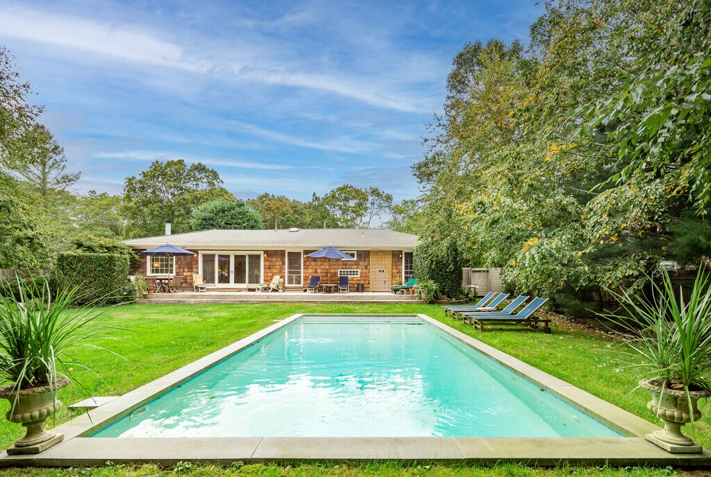 Newly renovated and professionally decorated home available for rent in Springs. French doors open to the mahogany deck and flower bordered lawn. Home has 3 bedrooms and 2 baths, kitchen with an island and gas fireplace in the living room, large primary suite with second gas fireplace, and a brand new heated pool. [[Rental Registration # 25-1147]] EH RR #: 25-1147 Rental Terms: Memorial Day - Labor Day: $65,000 July: $25,000 July - Labor Day: $55,000