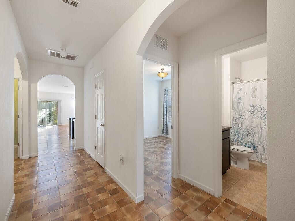 Enjoy peaceful mornings on your covered patio overlooking the tranquil lake. This beautifully maintained 4-bedroom, 2-bath, 2-car garage home sits on one of the largest lots in this sought-after gated community, offering both space and serenity. The open floor plan features tile throughout, a modern kitchen with granite countertops, and stainless steel appliances--blending comfort and style seamlessly. Both bathrooms include matching granite finishes for a cohesive, upscale look. With lawn care included, this property offers effortless living in a well-kept neighborhood. This home has been lovingly cared for--come see for yourself!