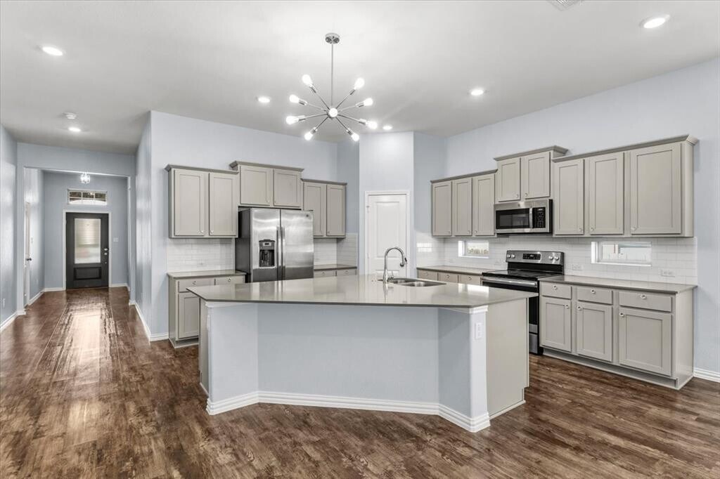 A Must-See in The Oaks at San Gabriel! Like-new, spacious single-story home built in 2020. This property offers 4 Beds/3 Full Baths across 2,161 sqft, perfect for growing families or those needing a dedicated home office/guest suite. Enjoy an open-concept floor plan with high ceilings and abundant natural light. The kitchen features a breakfast bar, SS appliances, and large pantry. The primary suite is conveniently located on the main level. Features include an indoor utility room, 2-car garage, and a covered back patio overlooking the fenced yard. Located in a premier community offering fantastic HOA amenities (pool, trails, community center). Zoned to highly-rated Liberty Hill ISD (verify schools). Excellent location with easy access to Georgetown Square and major roads. Ready for immediate move-in!