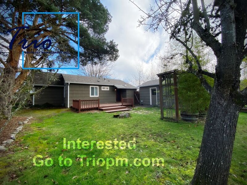 Wonderful 2 bedroom home with a bonus room that could be used as a 3rd bedroom, nursery or an office space etc... Large fully fenced back yard with large wood deck and a one car garage. What we love about the property: -Beautiful hardwood floors -Fresh interior paint -Updated bathroom VIEWING INSTRUCTIONS: Go to to verify the listing and schedule a showing at your convenience! Or call EXT 1 See triopm dot com to verify the listing and schedule a showing at your convenience! Or call Five Four One Four Three Four One Nine Zero Zero SMOKING: No smoking entire premises PET RESTRICTIONS: No pets UTILITIES: Tenant responsible for all utilities and garbage service GARAGE/PARKING: Off-street parking. 1 car garage. Property does not come with garage door remotes. GUARANTOR/CO-SIGNER: Not accepted LAUNDRY: Hook-ups in the garage YARD CARE: Tenant to maintain landscaping HOMEOWNER’S ASSOCIATION (HOA): No TERM: 1-year Lease SCREENING CRITERIA: Answers to your screening fee and application questions are found on the website at . No more wasting time waiting for a phone call back. Click the link to our website to review the screening criteria and apply online. Screening criteria is at the beginning of the application. Answers to your screening fee and application questions are found online. No more wasting time waiting for a phone call back. Application criteria and pet criteria are on the rentals page. See triopm dot com. HOW TO APPLY: 1. View the property interior and exterior via self-showing options above 2. Apply online Search our Rentals, Apply Now 3. Pay non-refundable screening fee online Trio Property Management Inc. 1000 Willagillespie Road Ste 206 Eugene, OR 97401 NO EMAIL INQUIRIES All information is deemed reliable but not guaranteed and is subject to change. The marketing information is syndicated to multiple websites that may change the information. Applicant to verify all information. Eugene properties impacted by the Eugene ordinances: Applications will be accepted upon posting of this listing until the property is rented. If you are an applicant with limited English proficiency, you are entitled to submit a request for an additional 48 hours to provide you with more time to seek language assistance services for the purpose of complying with the Housing Provider’s screening and application requirements.