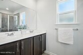 This immaculately kept,5-year-new waterfront home in highly coveted Bartram Creek is the one you've been waiting for - and it's move-in ready! Lovingly maintained and loaded with upgrades,it offers the perfect balance of open entertaining space,spacious common areas,and generously sized bedrooms with stunning water views from nearly every room! Perfectly positioned just minutes from State Road 9-B and I-95 for an easy commute,only 20 minutes to the beach,and a short stroll to the vibrant brand new Durbin Pavilion Town Center for shopping,dining,movies,and entertainment. Step inside to this perfectly designed home - a bright,open-concept floor plan with luxury vinyl plank flooring,designer lighting,soaring 9-foot ceilings,and an upgraded kitchen that's both functional and stunning- featuring endless cabinetry,quartz counters,stainless steel appliances,an oversized single basin sink,42'' upper cabinets with crown molding,and a custom shiplap breakfast bar that serves as the heart of the home. Upstairs,the oversized owner's suite is a true retreat,complete with a spa-inspired bath boasting a soaking tub,walk-in shower,and dual quartz vanity,plus an enormous walk-in closet. Two additional spacious bedrooms and a full bath with quartz counters and vanity space complete the second floor. Outside,relax on your covered lanai and soak in tranquil pond views from your fully fenced,generously size backyard oasis. Zoned for top-rated schools and nestled in a community that offers a resort-style zero-entry pool,splash pad,playground,putting green,clubhouse,and year-round activities. This home is also listed for sale. See MLS #2103955. MLS# 2113306