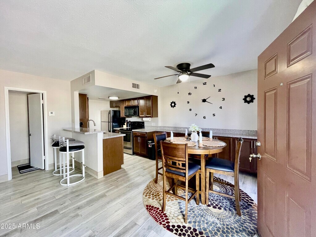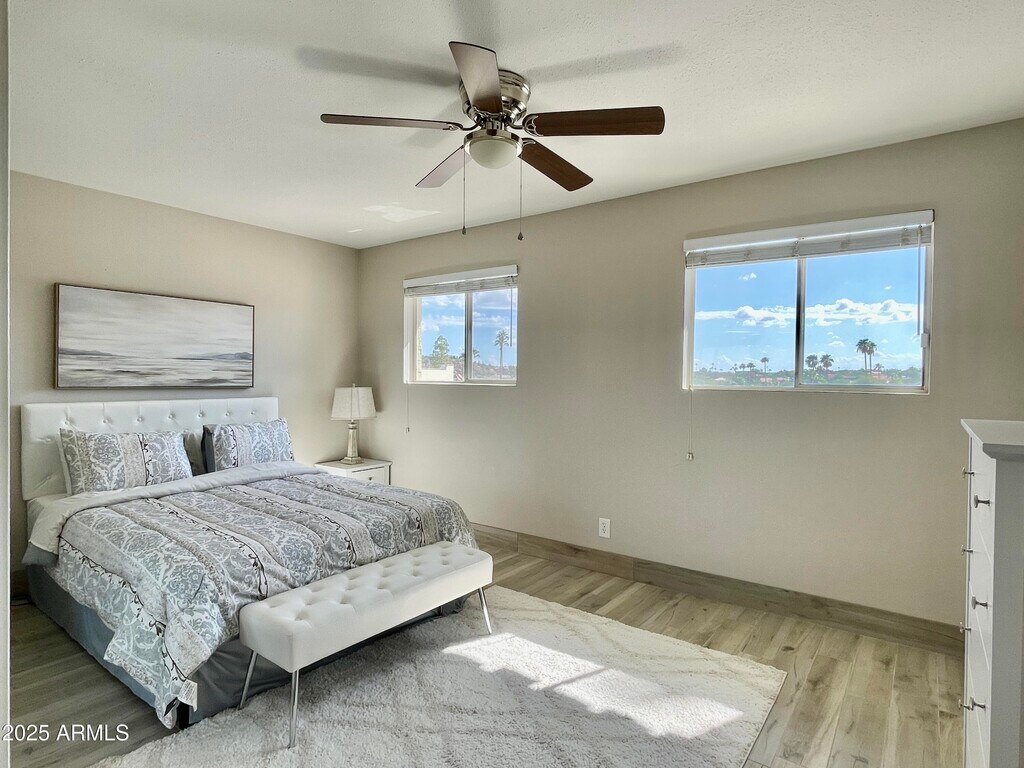 An Elegant Desert Escape in Fountain Hills Experience the beauty of the Sonoran Desert from this fully updated and thoughtfully furnished Saguaro Woods townhouse. Perfectly situated just a short walk from the world-famous Fountain and the charm of Avenue shops and dining,this residence is an invitation to slow down,savor,and indulge in desert living. Inside,a spacious layout unfolds across two levels. The main floor offers bright and open living,complete with a powder room for guests. Upstairs,restful bedrooms and a pristine full bath create a peaceful retreat after days spent exploring. Step out onto the expansive east-facing patio,where mornings greet you with golden sunrises over Four Peaks and Red Mountain. By evening... ...sip a glass of wine while the Fountain's glow shimmers in the distance. With a private carport,all-inclusive utilities,and WiFi,every detail is designed for comfort and ease. Whether you're here for golf,hiking,or simply soaking in the breathtaking views,this townhouse is more than a stay;it's a season of serenity and elegance in the heart of Fountain Hills.