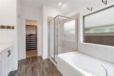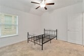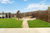Built in 2022, this one-story home offers 4 bedrooms, 3 full bathrooms, plus a private study. The open floor plan features a spacious living area with plenty of natural light, connecting seamlessly to the kitchen and dining spaces. The kitchen includes stainless steel appliances, a center island with seating, ample cabinet storage, and quartz countertops. Includes refrigerator, washer, and dryer. The primary suite is located at the back of the home for privacy and includes an en-suite bath with dual sinks, a soaking tub, separate shower, and walk-in closet. One secondary bedroom also features its own private en-suite bathroom, perfect for guests or multigenerational living. The remaining bedrooms are generously sized with access to another full bath. The dedicated study makes a great home office, playroom, or flex space. Enjoy outdoor living with no rear neighbors, as this property backs to green space for added privacy. A two-car garage provides convenience and extra storage. Neutral finishes and updated features throughout make this home move-in ready. Lease terms: 12-month minimum. Dogs considered on a case-by-case basis; no cats permitted.