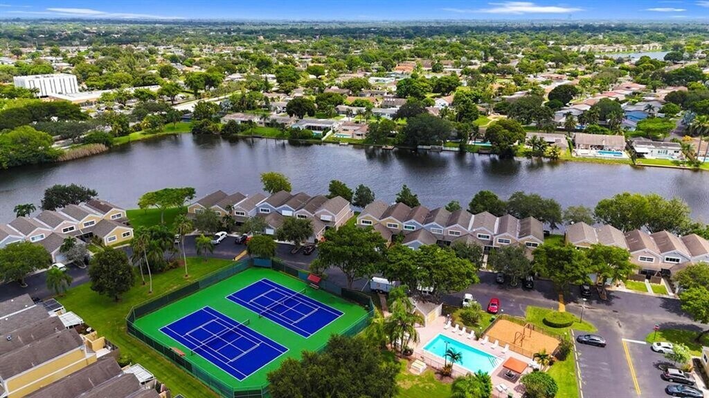 COURTESY OF Beachfront Realty Spacious townhome offering three bedrooms and multiple living areas with one of the largest layouts in the community, featuring lake views and abundant closet space throughout. The first floor includes a bedroom and full bath, while upstairs offers two primary suites, each with its own private bathroom. The home also features impact windows, a new A/C, new refrigerator, custom wood blinds, and an EV charger. Enjoy a large patio overlooking the lake, perfect for outdoor dining and entertaining. Residents enjoy extensive amenities including two swimming pools (one heated), tennis and pickleball courts, indoor racquetball courts, fitness center, sauna, steam room, jacuzzi, tot lots, and twenty-four-hour manned gate security with additional patrol. Conveniently located near shopping, dining, Trader Joe's, Publix, C.B. Smith Park, Memorial West Hospital, gyms, and major highways including Interstate Seventy-Five.