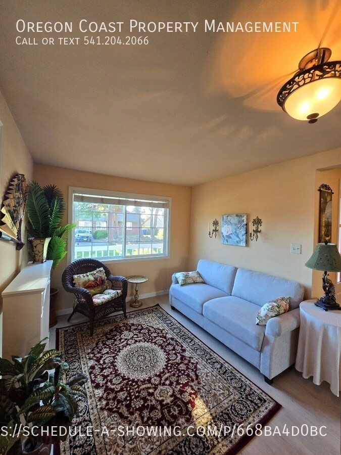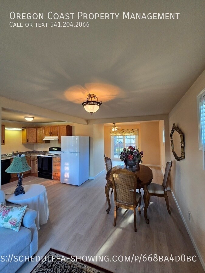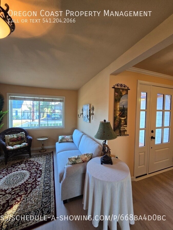 Oregon Coast Property Management $1850. Monthly $3700. Security Deposit 1-level cottage in the Oceanlake district of Lincoln City. Features 2bedrooms, 1.5 baths, freshly painted interior, laminate flooring throughout. W/D hookups, small 1 car garage with new opener. Just moments from the beach, lake, schools, shopping and hospital. (*Furnishings are not included home is staged for marketing purposes only*) Pet okay with approval and increase to security deposit of $200. Tenant Responsible for Utilities and Landscape - Electric - Pacific Power - Water/Sewer - City of Lincoln City - Garbage - North Lincoln Sanitary Service **Furnishings are not included home is staged for marketing purposes only** Please read and agree to our policy and procedures before requesting a showing. 1 Car Garage Close Beach Access Disposal Refrigerater Stove Washer/Dryer Hook Ups