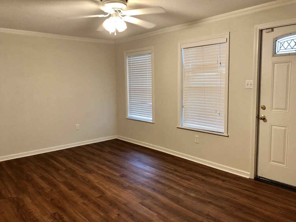 Walking distance to LSU, 2nd house from River Road on W. Roosevelt. Cute cottage just totally renovated with new electrical, plumbing, floors, fixtures, vanities, ceiling fans in every room, light and fan switches in every bedroom, new stainless appliances, new cabinets and granite counters, central A/C and heat, indoor laundry room. Covered back porch plus a covered back patio and a fully fenced backyard. Pics, Info, and Application available at Marketed exclusively by Tom Mackey Real Estate Services, 9336 Interline Ave, Baton Rouge, LA 70809 Licensed to practice real estate in LA. All measurements and property info deemed reliable but not guaranteed.