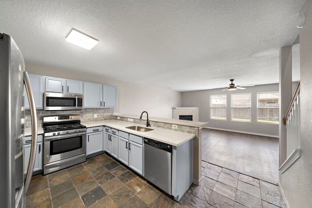 Your dream home awaits! Plenty of space with an ideal floor plan in this 2 story,3,100+ square foot home. Once you enter,the spacious dining room greets you and is the perfect spot for intimate gatherings or hosting guests. The newly remodeled kitchen is every home chef’s dream with plenty of cabinetry,stainless steel appliances,and ample counter space. Hard surfaced floors throughout the main level are ideal for easy cleaning. Located on the main level for convenience,the primary bedroom boasts an en-suite bath with a separate shower,garden soaking tub,and double sinks. Two living spaces can be found on both floors of the home. Movie nights come easy with the media room. The private backyard is a blank slate for new renters to make it their own! Just up the road,you can find restaurants,retail stores,and I-45. Come see the many features this home has to offer! MLS# 76698895
