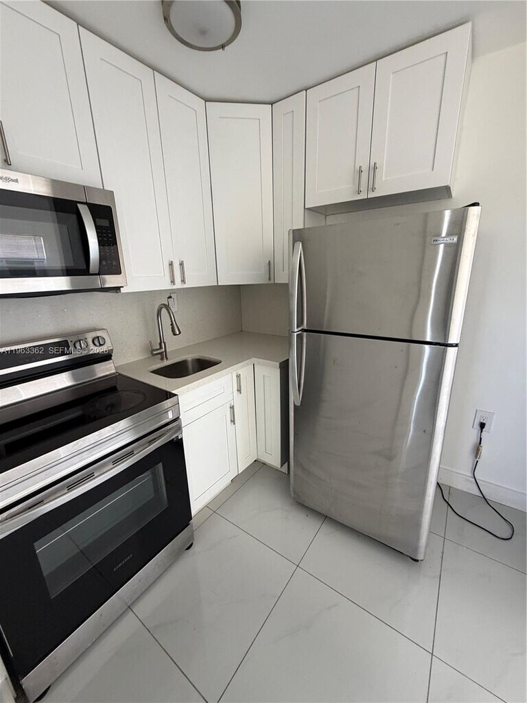 Lovely updated rental with 2 bedrooms, 1 bath, porcelain floors, stainless steel appliances and an open concept kitchen with granite counter tops. Peel off the wrapping of the refrigerator yourself. This great unit comes with an ample area to park 2 cars and patio space for you to enjoy. Access to major roads, highways, shopping centers and much more. Call this home sweet home. MLS # A11963362