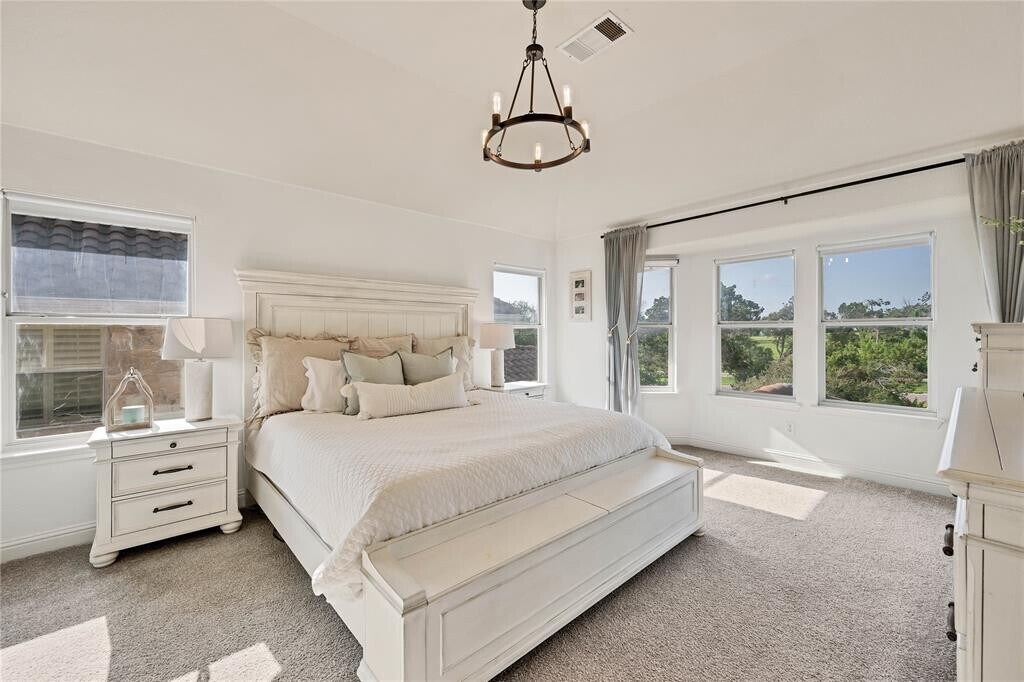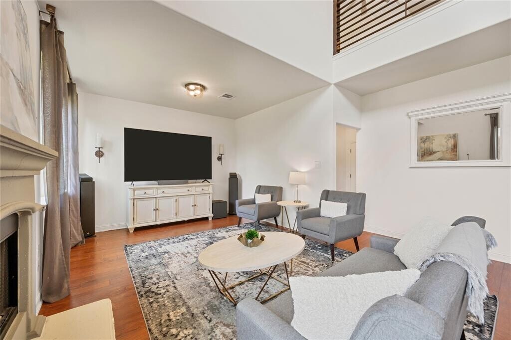 Discover your dream home in the exclusive Spillman Ranch neighborhood. From the moment you step inside, you'll be captivated by the grand two-story foyer, featuring stunning rock accents along the stairs, warm wood flooring, and an airy, sun-drenched atmosphere. Designed for modern living and entertaining, the open-concept living room and gourmet kitchen create the heart of the home. Here, a stylish gas fireplace sets the scene for intimate gatherings or relaxed nights in. The kitchen is a chef's delight, with new stainless steel appliances, modern cabinetry, and sleek quartz counter-tops, all anchored by a breakfast bar where guests can mingle. The second floor, accessible via a grand staircase, offers a private sanctuary with four spacious bedrooms and a massive game room for endless fun. Carpeting throughout the upstairs. Outside, the covered patio and grassy yard offer a perfect retreat for outdoors entertainment. Enjoy the convenience of a prime location, just minutes from the greens of Falconhead Golf Course and the numerous shops and restaurants on 620.