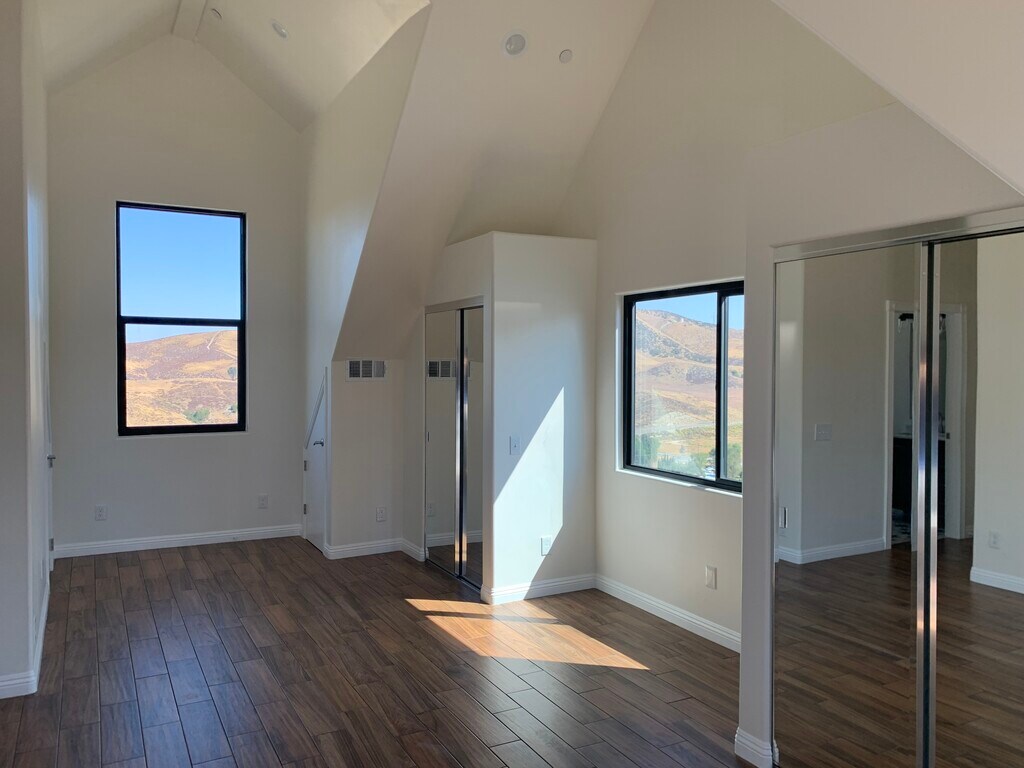A stunning, newly constructed 2,500 sq. ft. single-family home is now available for rent in the peaceful countryside of Lake Elizabeth, located just 20 miles east of Santa Clarita. This spacious residence offers a rare combination of modern amenities, scenic beauty, and thoughtful design perfect for those seeking tranquility without sacrificing comfort. This airy three-bedroom, three-bath residence offers panoramic views with a layout ideal for comfort and functionality. The house features tile flooring throughout and tall 10-foot ceilings. The first floor includes a large bedroom, a full bathroom with a tub and shower, a living room, a family room, a kitchen, and a dedicated laundry room with a stacked full-size washer and dryer. The open-concept kitchen includes a central island with bar-height seating, ample cabinetry, and brand-new LG appliances: an electric stove, microwave, dishwasher, and French door refrigerator. Upstairs, the master bedroom includes a private bathroom with a 5-foot walk-in shower stall. The second upstairs bedroom has its own similarly laid-out bathroom, located just outside the room for private use. The second floor boasts cathedral ceilings and expansive picture windows that flood the rooms with natural light. These oversized windows not only frame breathtaking views of the rolling countryside but also enhance the sense of space and openness in each bedroom. A large 500 sq. ft. balcony is accessible from both the hallway and the master bedroom, providing a serene outdoor space. The home also includes an oversized two-car garage that provides versatile space for vehicles, tools, and outdoor equipment, with room to accommodate hobbies, seasonal storage, or a fitness area. The paved front driveway and courtyard offer generous space for outdoor activities, and the fully irrigated landscaping supports both existing plantings and future garden expansion. Energy efficiency is built in, with a heat pump HVAC system, a 50-gallon electric water heater, and pre-wiring for an electric vehicle charging station if needed. The property will be available for rent starting February 1st. For more information or to schedule a viewing, please contact Kevin.