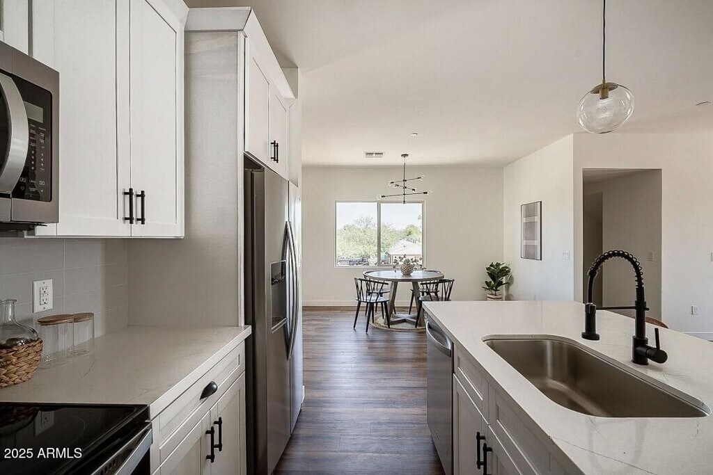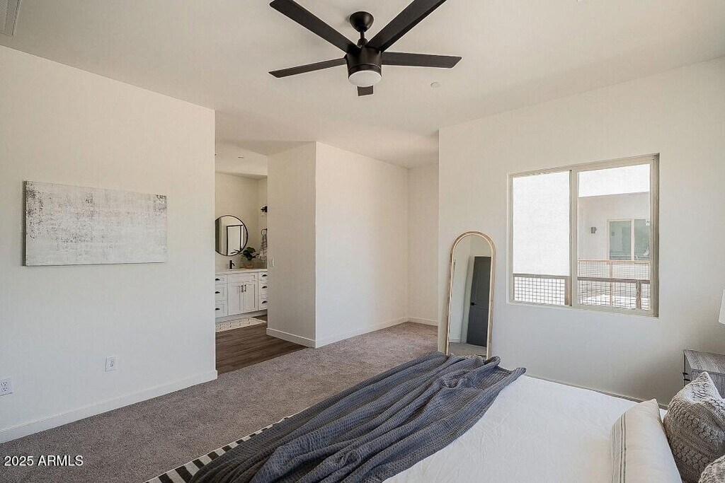 *$300 On Q Move In Credit with a 12 Month Lease* Thoughtfully designed 2 bedroom,3.5 bath townhome in Phoenix's Anderson Row complex. This home is FULL of modern upgrades and fixtures. Gorgeous eat-in kitchen features quartz countertops,elegant white shaker cabinets,black hardware,breakfast bar and stainless steel appliances! Enjoy vinyl wood plank flooring,10ft ceilings,neutral paint,and tons of natural light throughout! With separate dining area,and ground level flexible office/den this home has an ample amount of living and entertaining space! Top floor primary suite includes an oversized walk-in closet,double sinks,large shower and private balcony. In unit laundry with included washer/dryer! 2 car garage! Great location in the heart of Midtown!