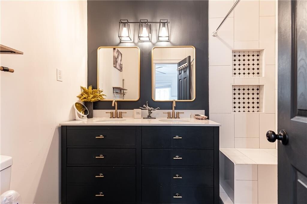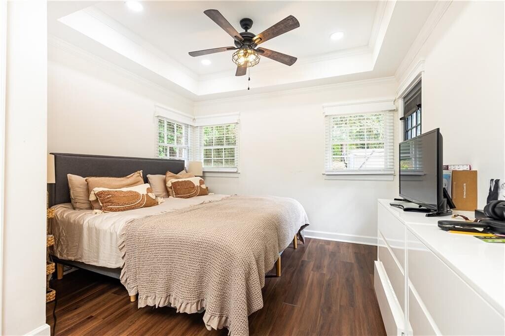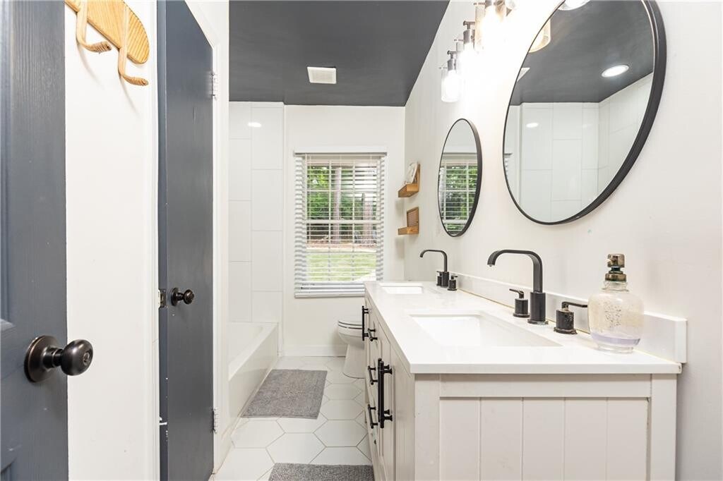 This house is so much larger than it looks and has so much charm! Completely renovated less than 3 years ago,it features an open floor plan and wonderful architectural details. The fireside living room features Craftsman millwork and opens to a gorgeous dining room with direct access to the backyard. Adjacent to the living room and accessed through French doors is the perfect office or den. The renovated kitchen features a huge center island,quartz countertops and all stainless appliances. There are 3 bedrooms and 3 full renovated baths. Two of the bedrooms are ensuite - one with double vanities and both with walk-in showers and could both serve as owner's suites making this the perfect roommate plan. Off of the kitchen you will find a generous mud room area and laundry closet as well as another bonus room with a closet that could be whatever you want it to be. The property is situated on a generous 1/2 acre lot that is full fenced in. Enjoy nature right in the middle of the city from your expansive deck or take a dip in the hot tub installed by the owners 2 years ago. There is also an outbuilding perfect for your gardening tools and outside toys. The carport includes a charging station for an electric vehicle. All of this in the perfect location convenient to Emory,Decatur,CHOAA,CDC and tons of parks & shopping & dining. Also convenient to the new campus of Globe Academy. Also listed for sale.