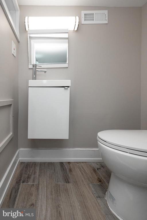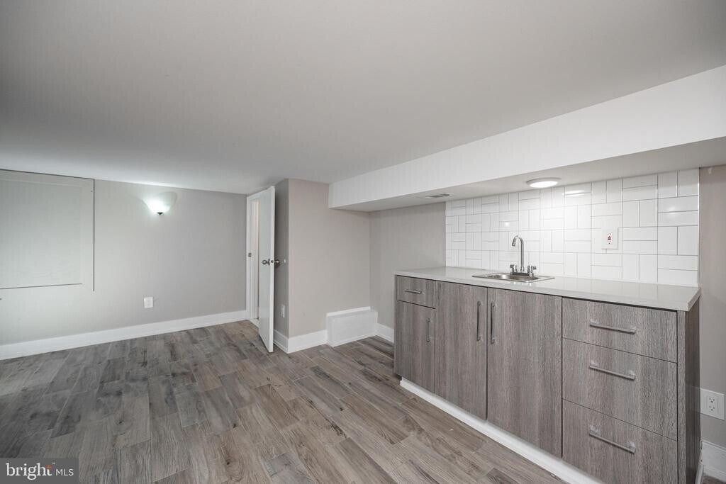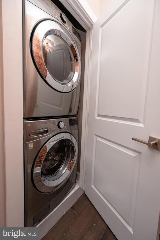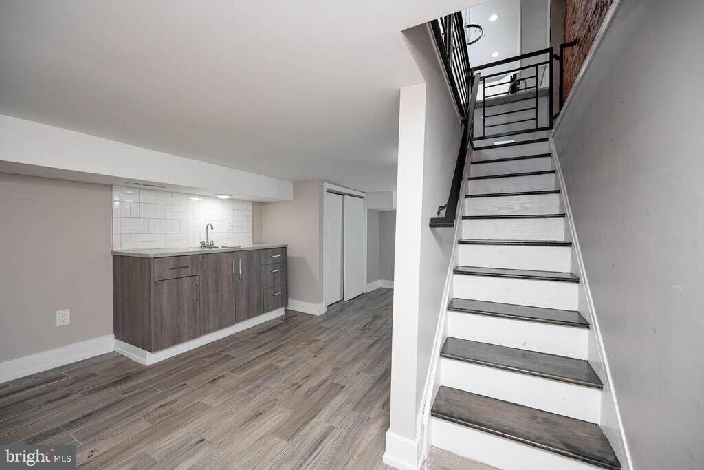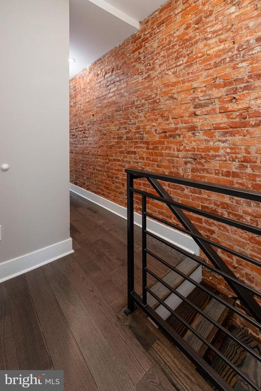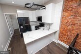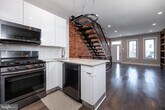This two-story townhome in Brewerytown features high ceilings, recessed lighting, exposed brick, and hardwood flooring throughout. Step onto the open front porch and into an open concept living/dining/kitchen that greets you with two large front windows and custom built-in bookcase. The living space is ample and perfect for entertaining. The dining area continues the theme with another window for added daylight. The all-white kitchen features modern high gloss cabinetry, ceramic tile backsplash, and stone countertops. The stainless appliances include a side-by-side refrigerator with ice and water dispensers, a 5-burner gas range with center griddle, dishwasher, and built-in micro-hood. The corner sink has a pull-down faucet and disposal. Beyond the kitchen is a bedroom with window and closet. The rear patio is fully enclosed. The staircase has modern metal railings, wood treads, and exposed brick that continues throughout the upstairs hallway. The front main bedroom has exposed brick, a ceiling fan and a walk-through closet that leads into the en-suite bath. The main bedroom bath is fully tiled with an oversized shower and floating double sinks with vanity storage The second bedroom at the rear has exposed brick, a bay window, ceiling fan, and can accommodate a queen-sized bed. The hall bath is tiled, with bathtub/shower, storage vanity, window, and shelving. The laundry closet has a stacked front-loading washer and dryer. This home has central air and is ready to make it your home!