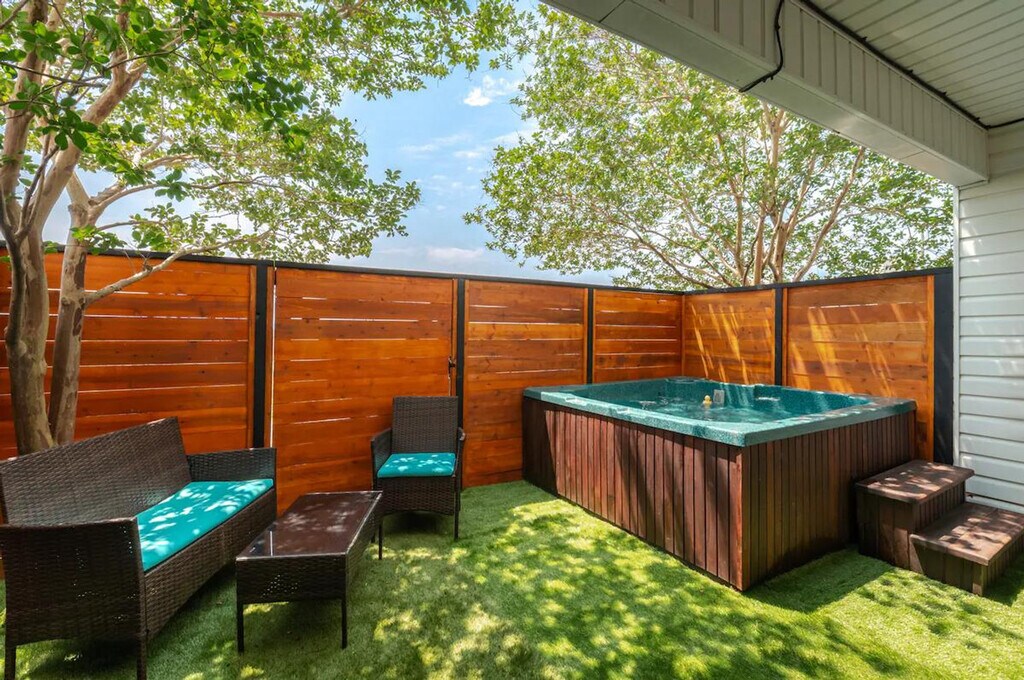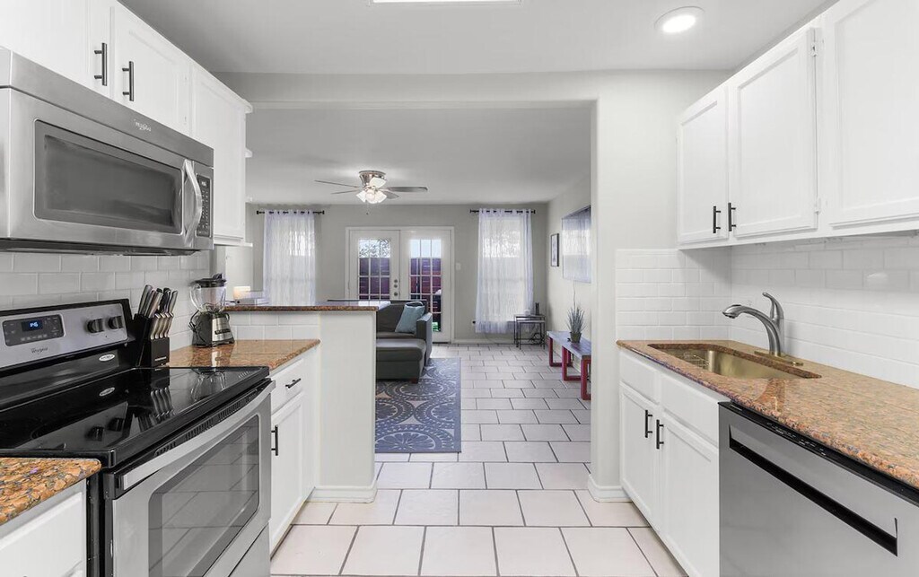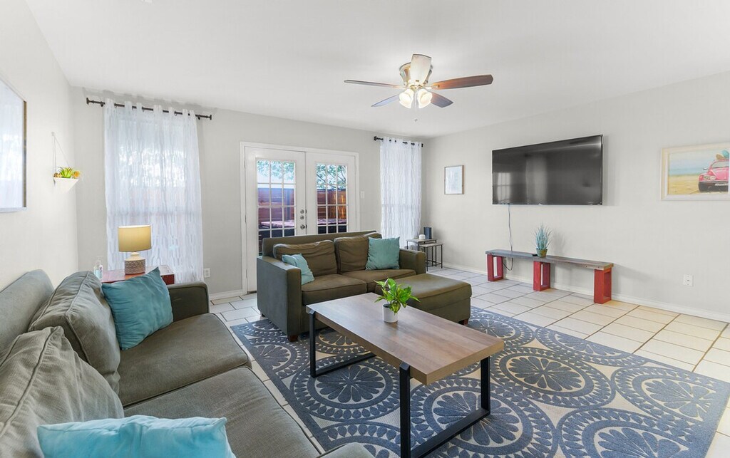 This 1700 sq ft 3-bedroom 2.5-bath townhouse serves as a perfect base for exploring the beaches on Padre Island. Located conveniently with Waves Waterpark at the end of the street and two beautiful beaches just 4 and 7 minutes away, respectively, this home offers easy access to Port Aransas, a mere 18-minute drive. Enjoy the convenience of reaching affordable dining options like Rudy's BBQ in about 10 minutes off the island. The townhouse is designed for comfort without an overwhelming beach theme. It features memory foam mattresses, a 60-inch Roku TV in the living room and a 42-inch TV upstairs, artificial turf in the private backyard, an inflatable kids pool, and a washer and dryer for your convenience. The kitchen is equipped with essentials including a fry-daddy for cooking your own fish and shrimp. A golf cart is available for rent upon request. For guests with pets, we require information about each pet, such as shedding, chewing habits, potty training status, and crate use. A $200 deposit per pet is required for shorter stays, which doubles for stays longer than a week. Half of the deposit is refundable if no deep cleaning is needed for pet-related issues or damage.