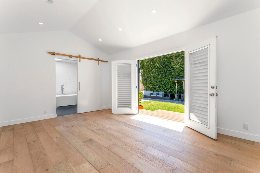 Coming Soon! Experience luxury living at its finest in this beautifully remodeled home at 1444 Stearns Dr., Los Angeles, CA 90035. This stunning single-story residence boasts over 2,300 square feet of elegant living space, featuring 4 bedrooms and 4.5 bathrooms. The home is adorned with French Oak hardwood floors and filled with natural light from skylights and brand-new windows throughout. The open-concept living and dining areas flow seamlessly into a gourmet kitchen, complete with top-of-the-line appliances, quartz countertops, custom cabinetry, an island with seating, and stylish fixtures—perfect for entertaining. The primary suite features French doors that open to a meticulously landscaped backyard, while the spacious master suite also has French doors leading outside. The master bathroom offers a spa-like experience with a soaking tub, double sinks, and a large shower. Step outside to enjoy a newly constructed sparkling pool and spa, surrounded by a serene outdoor space perfect for relaxation and gatherings. Adjacent to the pool is a detached two-story guest house/pool house, offering an additional 650 square feet of living space. The guest house includes a full bathroom and kitchenette downstairs, with a bedroom, half bathroom, and a full-sized washer and dryer upstairs, both levels overlooking the pool and spa. This home has been completely remodeled, including a new roof, new copper plumbing, updated electrical systems, and all-new bathrooms, kitchen, and flooring. Located in the highly sought-after Picfair area, one of West LA's top neighborhoods, this home offers the perfect blend of style, comfort, and convenience. Don't miss this fabulous opportunity!