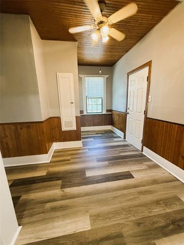 Corsicana property located near ALL the shopping and close to highway access! Adorable 3 bed, 1 bath home on a corner lot with detached garage and nice yard. The home has fresh paint and vinyl plank floor. The kitchen has granite counters and a smart oven, washer and dryer hookups and space for a table and chairs for cozy dining. Beadboard can be found on the ceiling and walls of the breakfast area and hallway, which leads to two bedrooms and a full bath. A 3rd bedroom is located at the front of the home. There is a detached garage and storage room located on the side of the home. Home is partially fenced with chain link. Driveway is unpaved but well defined with gravel. The yard is a nice size and level, with a covered back porch. Home is also listed for sale, MLS 21098527. Owner will manage home after lease starts.